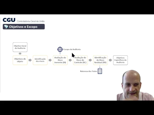 seguinte você parte do objetivo geral da escolher quando a gente faz um plano ao gente tem definido o objetivo geral da auditoria que ela vai fazer e Quais são quais são as premissas principais que ela que ela pretende avaliar e a partir disso nós vamos estruturar o entendimento que foi formado né a partir daquele entendimento foi formado ali naquela fase anterior de entendimento do contexto nós vamos entender como é a estrutura de objetivos riscos encontrou-se essa Tríade é quem vai dar o tom da nossa auditoria objetivo risco e controle como funciona Então a primeira coisa