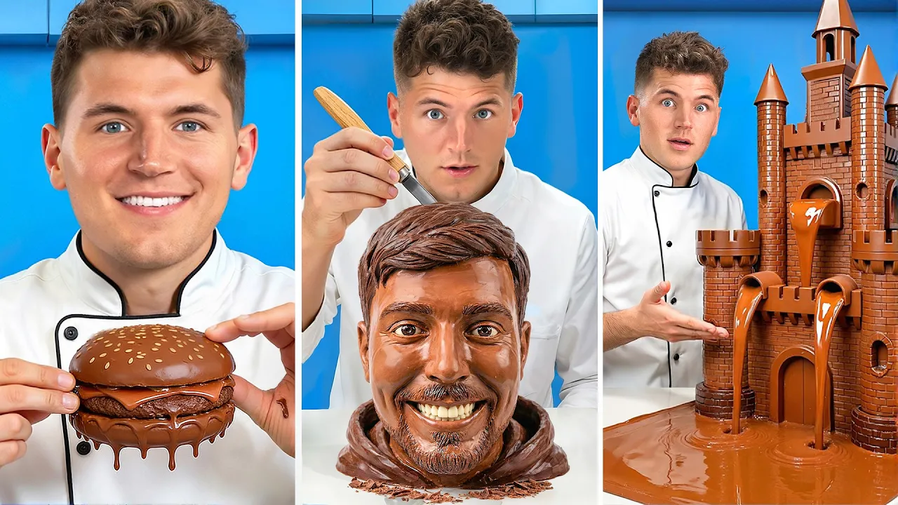 Oh ! Nick : Ouais. Patrick : C'est tellement satisfaisant. Nick : Je sais. C'est dingue, non ? Regarde ça ! Patrick : Ooh ! C'est trop cool. Nick : C'est magnifique, non ? Patrick : C'est... Nick : C'est de l'art. En fait, ce n'est pas vraiment de l'art, comparé à ce que nous allons voir plus tard dans cette vidéo, notamment une peinture de Ratatouille entièrement réalisée en chocolat, que je vais offrir à l'un d'entre vous, ainsi qu'une sculpture géante en chocolat mystère que je vais réaliser avec le meilleur sculpteur sur chocolat de la planète. Mais