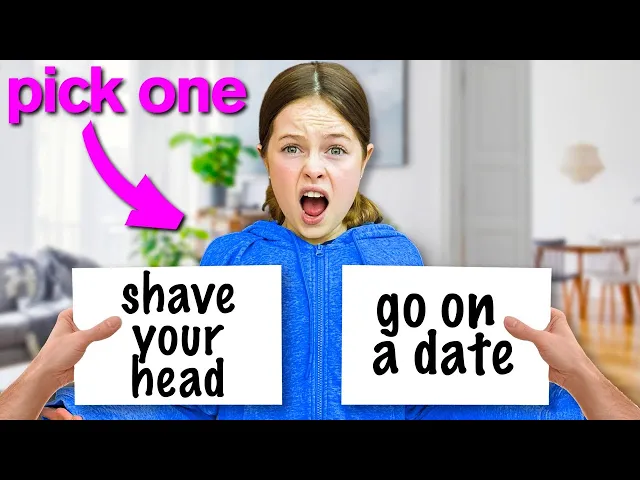one okay should I trust you or not yes yes yes yeah okay D yeah what you know you've always wanted to don't even lie did you print this oh yeah yeah what was the other option wait no oh ah no I like that option no I don't all right guys let's go on our date woo we're going to make a video about that date and post it really soon so stay tuned my daughter agrees to go on her first date and I get slimed in the same video shocking just do it would you get it