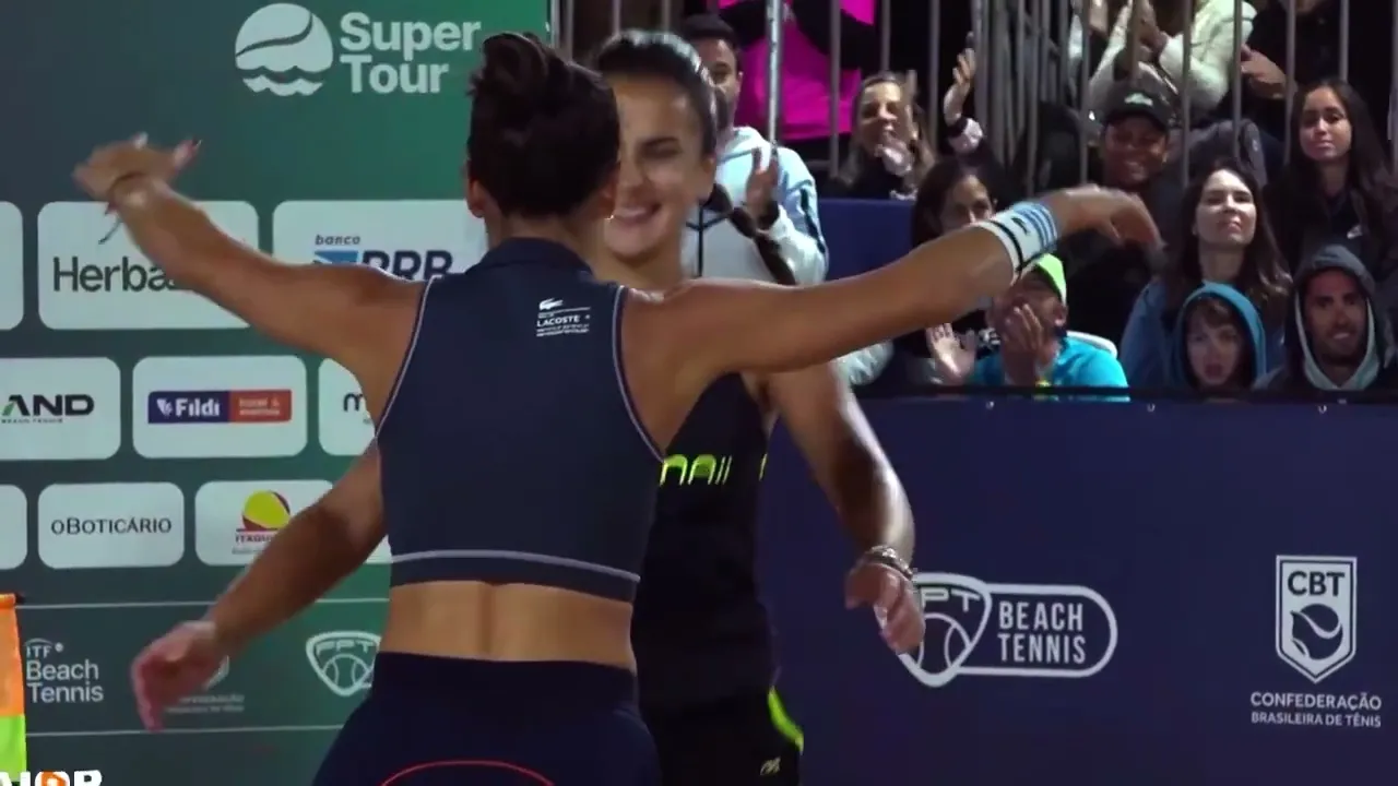 fora vitória do Brasil vitória do Brasil sensacional de virada de Virada o Improvável acontece o Improvável acontece o Brasil vence a dupla número um do mundo a dupla número do mundo perana Vitória Marquez Vitória marque 16 anos mas infelizmente a gente acabou com o título de vice-campeão Alan para fora Tava acho que tava fora aqui a bola tudo bem Parecia boa parecia boa então você manda mais do que você tá dentro da quadra aí João Barreto olha salva de palmas ó todo mundo aplaudindo grande confronto sensacional André cavalo Baran dá um saque bom tá fundo
