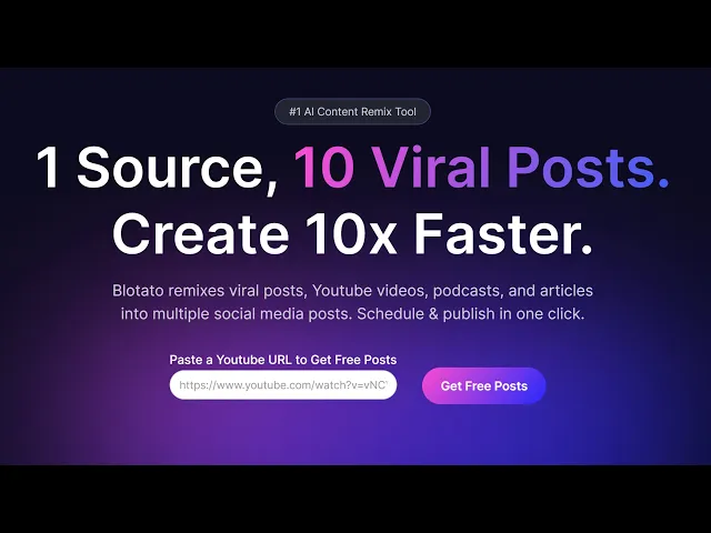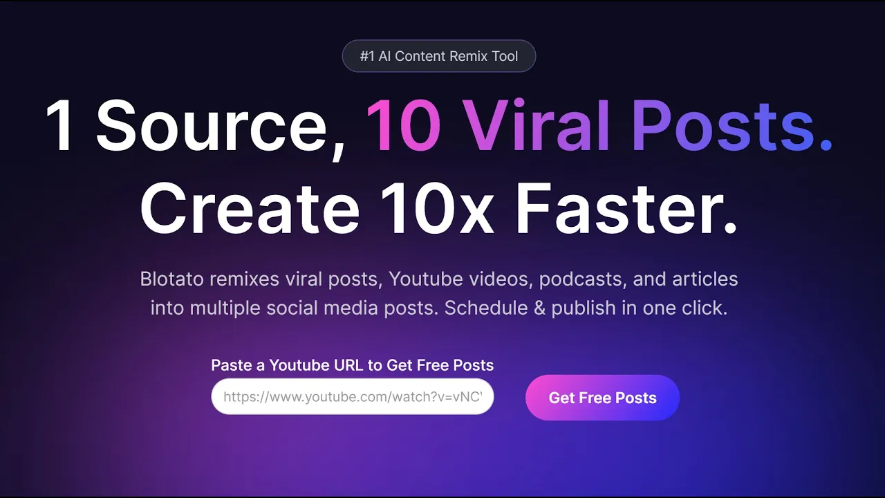 my name is Sabrina ramov and I'm super excited to share my new SAS app blow and I built it for myself to help me scale highquality content creation how it works is it makes it super easy for you to remix already existing content for example I usually remix my YouTube videos into a newsletter and then multiple short form posts for LinkedIn Twitter Tik Tok scripts the target user is if you're a coach consultant solopreneur small business or Creator and you feel like you don't have lots of time money or bandwidth to spend on creating content but you obviously don't want to push low effort 100% AI generated content that would hurt your brand at the same time you don't want to spend hours tweaking make. com automations troubleshooting them and paying for five different tools and so I built blow to literally replace five different apps I was paying for it's able to pull content from things like YouTube videos podcasts already existing social media posts articles it has a library of highquality prompts an AI writer to remix that content into new posts for example turning my YouTube video into a newsletter and includes a fully featured scheduler so you can cue everything up for the week my goal is to make it super easy for myself and for you to create viral posts in minutes and organically grow your brand on social media without having to spend many many hours per week so bles for you if you're a solopreneur Creator small business owner a small agency and you want to scale content creation you're serious about it and Bot is not for things like video clipping for example taking a long form video and clipping it into short videos it's not for automated lowquality AI content generation you'll see the workflow is really designed to make it easy for you to focus on adding your unique perspective and insights to every single piece of content and honestly it's not for you if you're just starting out and you're not really serious yet about building your personal brand or business brand okay so now I'm going to show you how it works here you can paste a YouTube URL and get a couple free posts so I'm going to grab this YouTube url of my previous video real-time deep fakes with Kylie Jenner and Angelina Jolie Okay just grab the URL paste it here and then click get free posts if you're brand new it'll walk you through sign up process first before you can access the free posts but in my case I already have an account so it logs me right in and what it did here is it added the YouTube video as a source here's the link and here's the actual transcript from the entire 30 minute long YouTube video so it pulled that entire transcript okay and then it generated multiple social media posts one for Instagram one for Twitter and one for LinkedIn and here is the post itself about deep fakes this is the prompt that was used so when you sign up you get a bunch of high quality prompts already but you can also import prompts that you are using that you like here's the post for Instagram here's the post for LinkedIn each one's a little bit different and you also get an AI generated image this integrates with the open source model flux for image generation and it takes your post runs it through a little post processing and then creates a magic prompt if you want to regenerate the image you totally can and so this is a really nice way to generate AI images without having to use a separate tool okay and if you like this image click save if you want to use the previous one you have all of the history here what I recommend everyone do is to take this post treat it as like the 70% first draft and then spend your time adding your unique insights perspective and value ad as AI generated content becomes more prevalent it's your unique voice and insights that will make your brand stand out and so I could have designed blow that it automatically generates 100% AI content at scale and you just publish it but I really don't think that's the way to go I don't think that's an effective High Roi way to build your personal brand and so I've designed this to make it really easy for you to focus on adding your unique insights perspective voice and value ad now once you've done that you can either schedule directly to LinkedIn you can call a web hook let's say zapier or make. com you can schedule it in the future you can pick a time slot in the future or you can set it up in your queue blow comes with a fully featured calendar and scheduling system so this is kind of my schedule for the week 8:23 a.