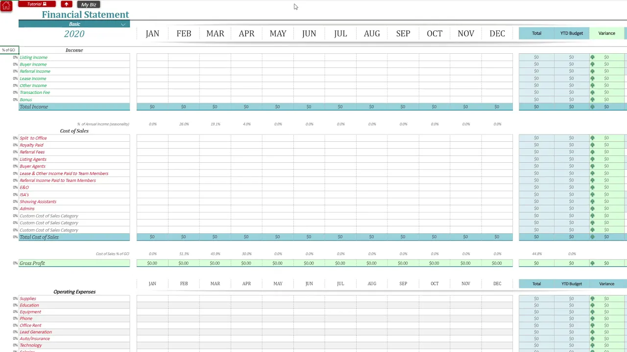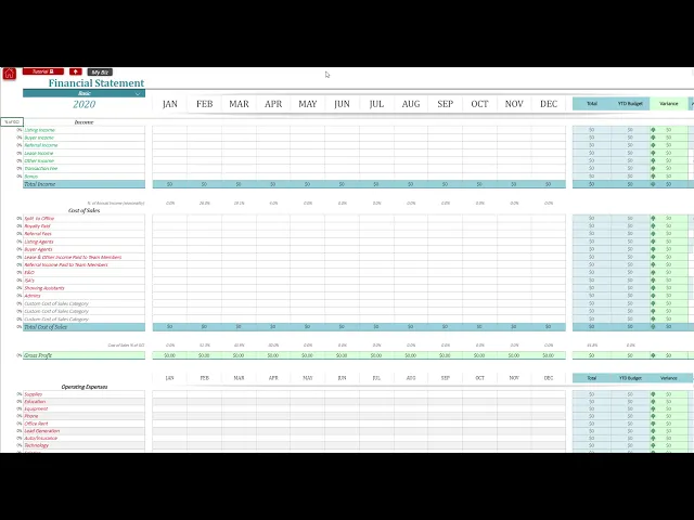 financial statement nothing's happened yet for the year but I can turn on advanced and now it's gonna actually show me what my future months look like on my financial statements so we're still in December of 2019 but I can see my January financials February March and April how powerful is that for your business to be able to see all the way forward at your business and financials so I can see my total income for January my total cost of sales that are pending what percentage of my business is going out to costs of sales and