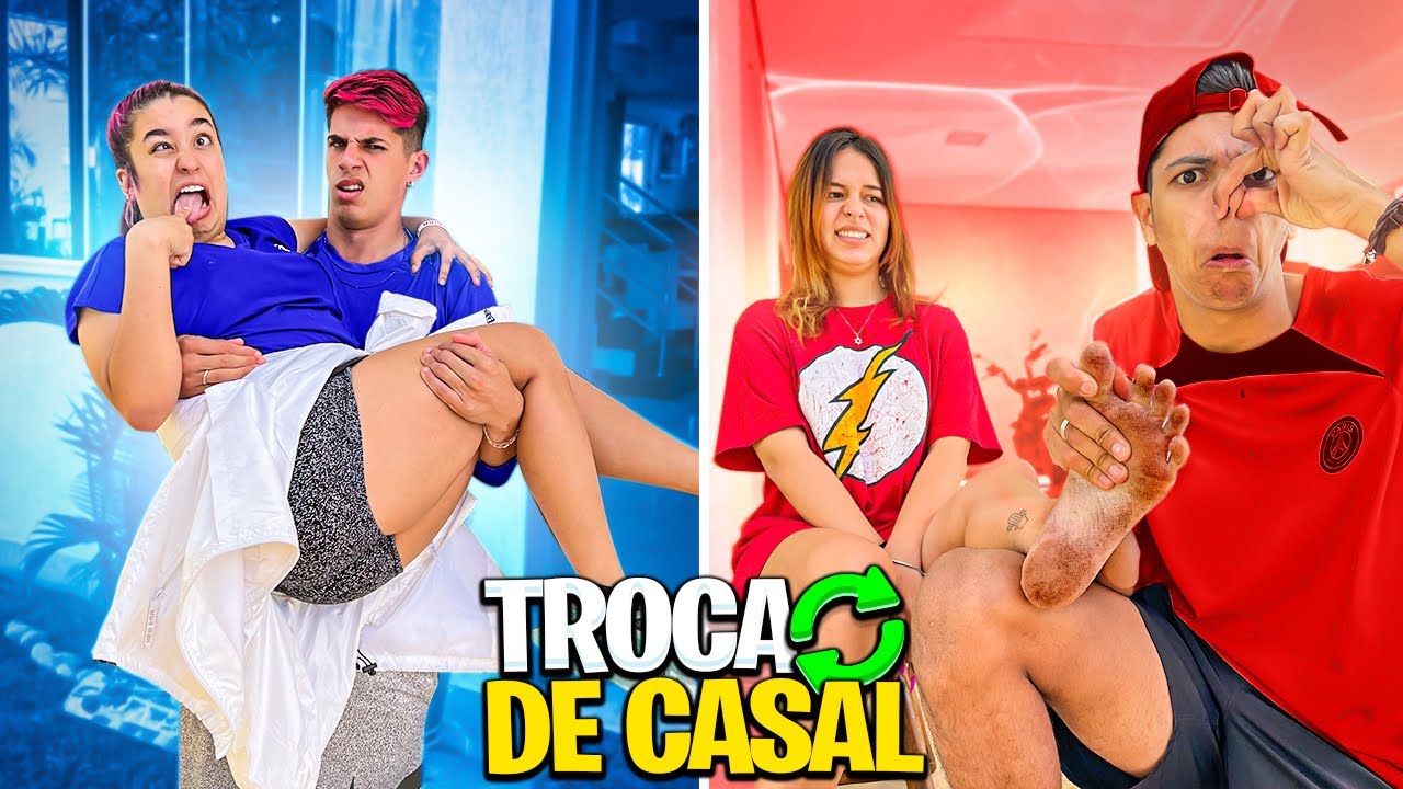e no vídeo de hoje vamos trocar de casal por 24 Eu amo esses vídeos você é solteiro como você ama esses vídeos explica o vídeo zumb explic ver eu nunca vou fazer isso Vamos lá gente hoje o vídeo vai ser ass seguin tira isso tira esse capacete me tira esse capacete sa não vai gente Gente o que que é isso gente faa arrancar na caba do com capacete praga o vídeo Hoje vai ser troca de casal gente nossa que silêncio gente eu não suporto mais v está pronto PR ser meu casal não porque senão vou
