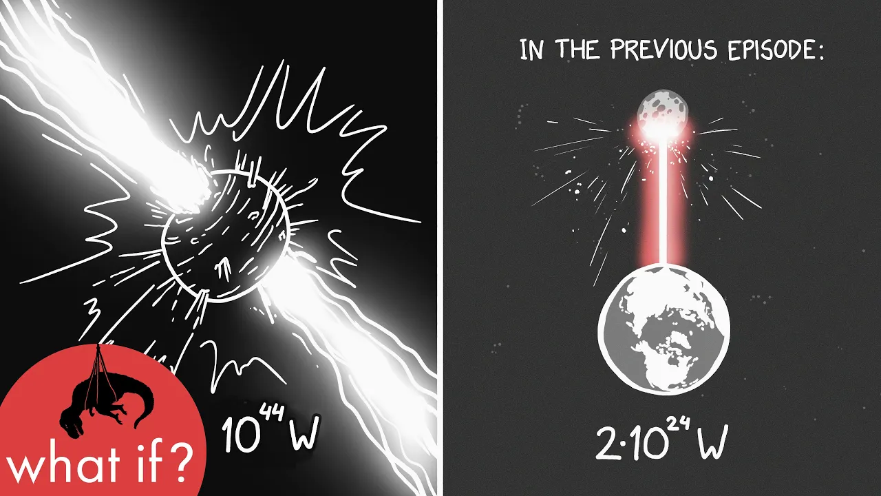 this question comes from me it's a new chapter from the 10th anniversary edition of what if which is now available online and in print at the end of the laser pointer video we constructed an array of lasers with a total power of 2 * 10 24 Watts which not only lit up the moon but violently ejected it from orbit around the Earth we decided that was enough power but why you can always make a number bigger no one can stop you there are infinitely many numbers and I want to know what if we tried even
