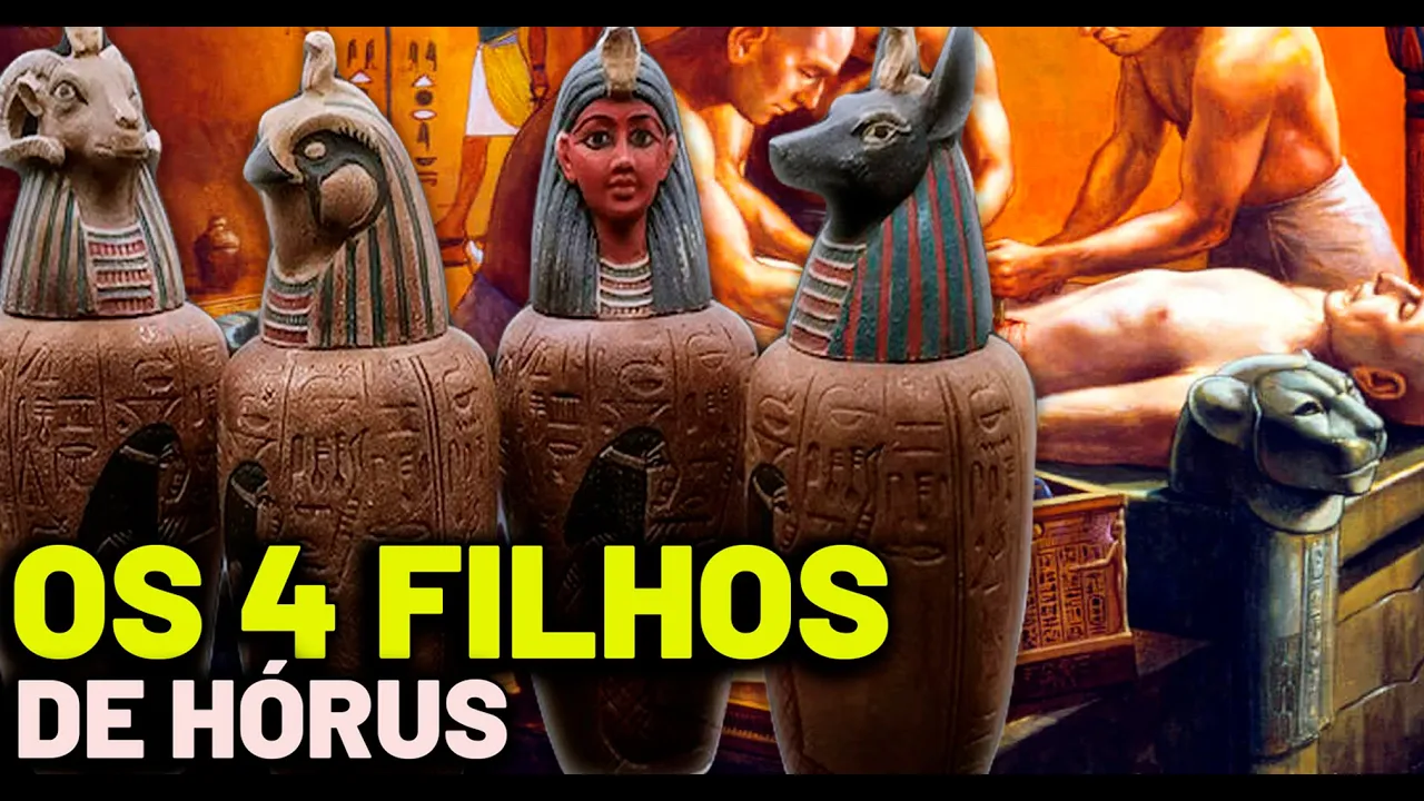 importante na cerimônia os principais órgãos eram colocados em vasos chamados canópus que ficavam ao lado do sarcófago e eram protegidos por quatro deuses os filhos de Oros cada um era responsável por um órgão e o selava para facilitar a libertação da alma do seu aspecto físico além da Purificação do corpo a presença dessas divindades era essencial para garantir a passagem da alma para o mundo dos mortos Mas quem eram os filhos de Oros e qual era a sua conexão com os rituais funerários de acordo com o mito os filhos de Oros não descendem diretamente do