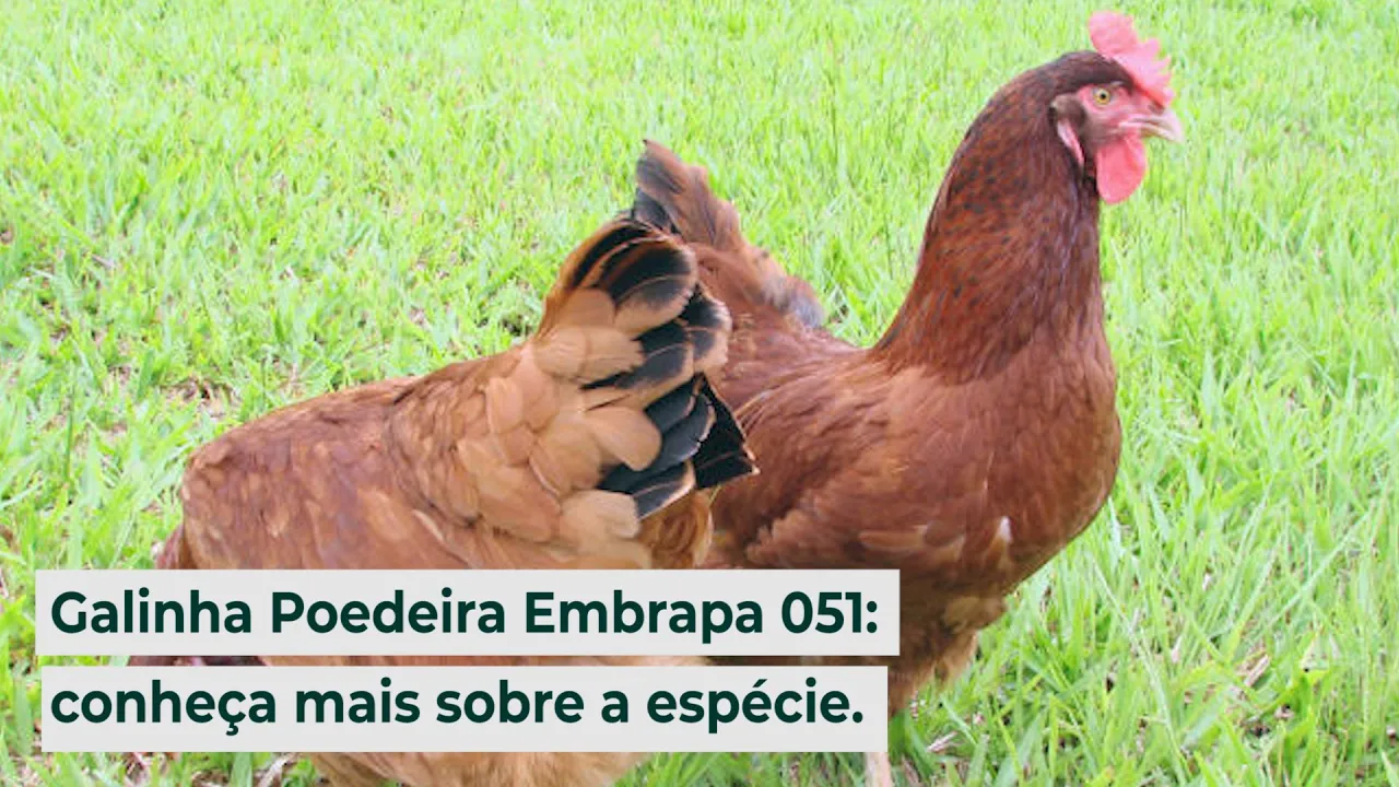casca marrom e por serem rústicas se adaptam bem aos sistemas menos intensivos apresentam plumagem marrom intenso ótima produção de ovos longevidade e rusticidade éso Antônio Pereira pesquisador da Embrapa suínos e aves fala com mais detalhes sobre as características da espéce confira a poedeira Embrapa 051 é uma galinha que foi desenvolvida para atender produtores interessados na produção alternativa de ovos para o mercado específico pode ser ovos caipira ovos Colonia ovos orgânicos é uma galinha de alta produção mas ela pode ser alimentada com alimentos produzidos na própria propriedade rural Então ela precisa de ração balanceada mas os