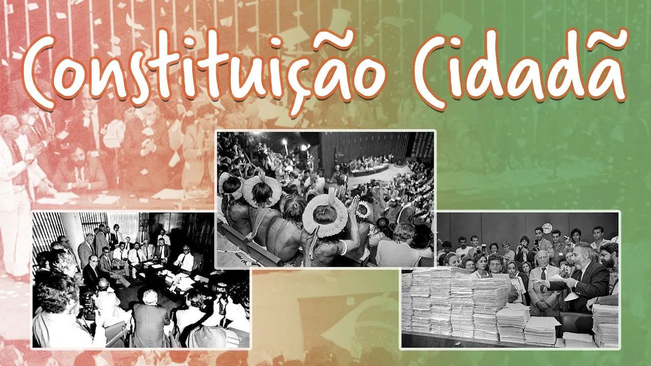 escrever Então finalmente a nossa nova constituição a questão é que desde lado a nossa independência da nossa primeira Constituição de 1824 do primeiro reinado mas não tínhamos uma participação efetiva da população na construção na escrita das nossas constituições Então por conta desse in the final da ditadura de Protestos de manifestações Inclusive das Diretas Já e exigiu ali da sociedade civil e dos representantes dessa sociedade de movimentos sociais de movimentos políticos de que houvesse uma maior participação da população diretamente ali na escrita dessa nova lei é por isso que durante cinco meses da elaboração da carta