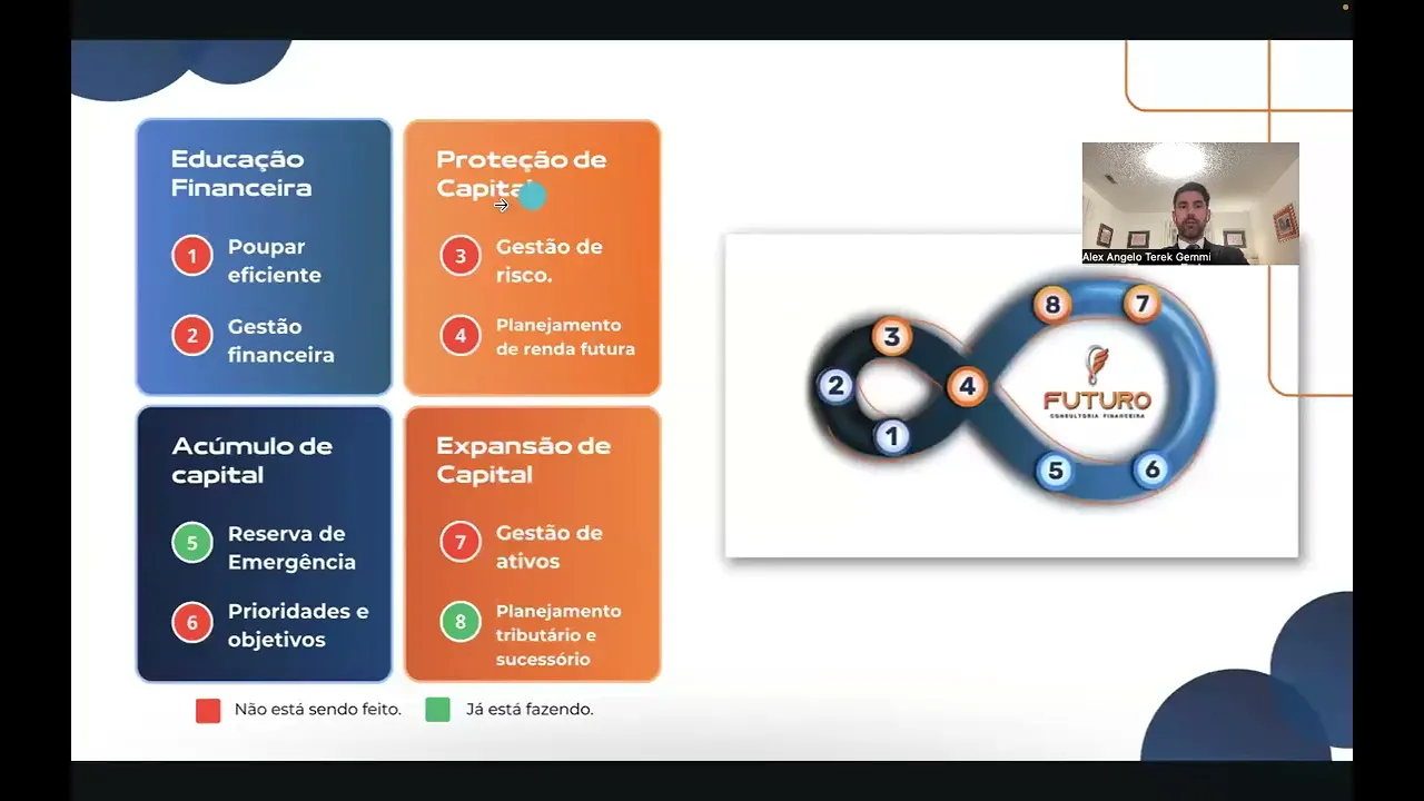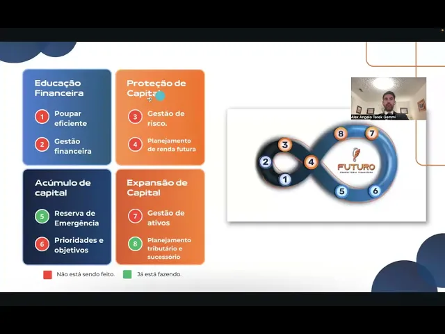 Fala galera da futuro vamos lá agora vamos pra segunda parte do vídeo segunda parte da apresentação do momento x vamos acompanhar para vocês pegarem todos os detalhes aprender bem Lembrando que agora primeira parte foi queba de gelo a capa jornada XP os objetivos do cliente falamos das estratégias os detalhes tá agora a gente vai pro Bloco dois Tanto para você assistir na parte teoria das dicas aqui de como fazer como também praticar tá pratique separado tá gente Pratique o 45 separado pratica bastante várias vezes umas 10 15 vezes na semana se for possível antes de você querer juntar as duas partes tá porque depois a gente já vai fazer isso muito bem então acabei ali na peção na empresa o quê acabei de falar dos objetivos compromisso e coerente f dos gati a gente vai pra próxima parte agora agora que é a parte dos oito passos tá aqui é um vídeo que explica bem legal por sinal parabéns a pessoal aí do cx de marketing um vídeo que explica aqui ó a linha né Eh do infinito 18 oito passos Então a gente vai falar sobre isso já e a estratégia certinho mas antes de paraar vamos olhar aqui algumas informações relevantes importantíssimas para vocês aonde tá esse documento novamente oráculo links úteis links úteis Pit padrão Pit padrão vai abrir documento aqui nessa parte que é a parte quatro são os oito passos e a estratégia 10 a 15 minutos alguns pontos importantes elici essa etapa explicando que o foco da metodologia é a liberdade financeira e pergunta pro cliente o que que é liberdade financeira para você né finaliza amarrando os pontos focando na metodologia e respostas do cliente perfil comportamental canal de comunicação valores né se se adapte se adeque ao perfil do cliente e aí você pode usar tanto deixar de ser escravo do seu trabalho como também fazer o dinheiro trabalhar para você eu sempre gostei mais do Positivo do que o do negativo Então imagina o dinheiro trabalhar para você você não precisar mais trabalhar e o dinheiro trabalhar para você padrão de vida essa nossa metodologia foi criada através de um conceito internacional personalizado para a maioria dos brasileiros se falar se faltar algum dos oitos oito passos pode dar errado tendo todos eles todos eles o planejamento tende a dar certo mesmo se alguma coisa der errada no meio do caminho você cliente atualmente tem dois passos de oito um passo de oito zero passos de oito tá então basicamente Esse é o início aqui dessa introdução os oito passos paraa Liberdade financeira para começar a explicação do cliente esse símbolo do infinito é porque o cliente tem o dinheiro trabalhando para ele uma forma infinita mantendo o padrão de vida dele para sempre e aí vão começar as explicações dos oito passos Lembrando que é importantíssimo deixa eu passar aqui para vocês anda que ele dá uma travadinha agora vai boa passou o vídeo vem aqui E aí pessoal a gente vai começar a explicar o quê os pilares Então são quatro pilares principais educação financeira proteção de Capital acúmulo de capital e expansão de Capital cada uma delas tem sua importância o mais importante né e o maior GAP que a gente tem é o Pilar de maior desfalque na população brasileira é o Pilar de educação financeira porque a gente não tem educação financeira no prezinho no colégio na escola em lugar nenhum tá e dentro desse Pilar a gente tem os dois passos primeiro passo é poupar eficiente O que que você entende por poupar eficiente o cliente vai lá dar a ideia dele a opinião dele e aí você vai chegar e vai explicar eh o ideal é poupar o valor para você alcançar os objetivos né vou falar na sequência qual que é esse valor caso não seja possível recomendamos você poupar no mínimo 20% da sua renda logo que o dinheiro caí ou seja recebeu já poupa paga você primeiro e depois faz a outra parte por que 20% né porque se poupar constantemente 20% em 30 anos você chegará à sua liberdade financeira Tá certo passo dois não precisa entrar muito no detalhe aqui gente por quê Porque depois nas reuniões de acompanhamento né vocês vão ver nas próximas aulas vai ter mais detalhadinho como fazer isso tá aqui é só um resumo no no no complemento aqui da reunião a gente vai ter como fazer isso passo dois né pergunta clente você faz planejamento e gestão de fluxo de caixa maioria faz um outro não faz tá nós recomendamos fazer planejamento no mínimo anual igual uma empresa igual qualquer empresa né Por exemplo você planejou que você vai ganhar 72. 000 no ano você vai gastar 42. 000 no ano quer dizer que em 10 anos você tem 300.