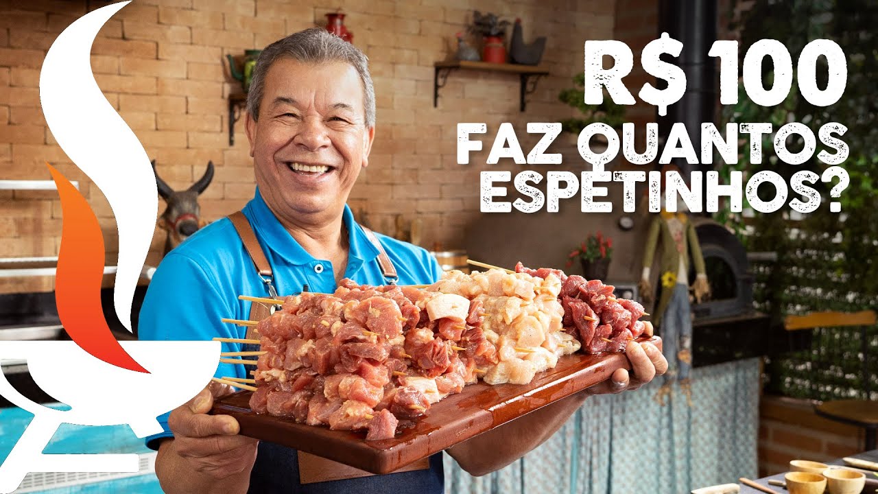 conteúdo deixa seu like aí ou você tem uma sugestão para fazer pra gente deixa aí nos comentários que eu quero acompanhar mas vamos lá vamos às nossas contas quanto que eu faturei eu comprei 3,600 de a e paguei R 22,990 o kg um total de 84 1,400 de pernil a r 15,98 kg barato hein deu 22,88 Total eu comprei 1,60 de frango a 14,98 kg deu um total de 15,91 somando tudo deu 123 Então vamos lá no final renderam 30 espetinhos de acem 10 espetinhos de frango e três espetinho de suino 30 40 53 espetinho