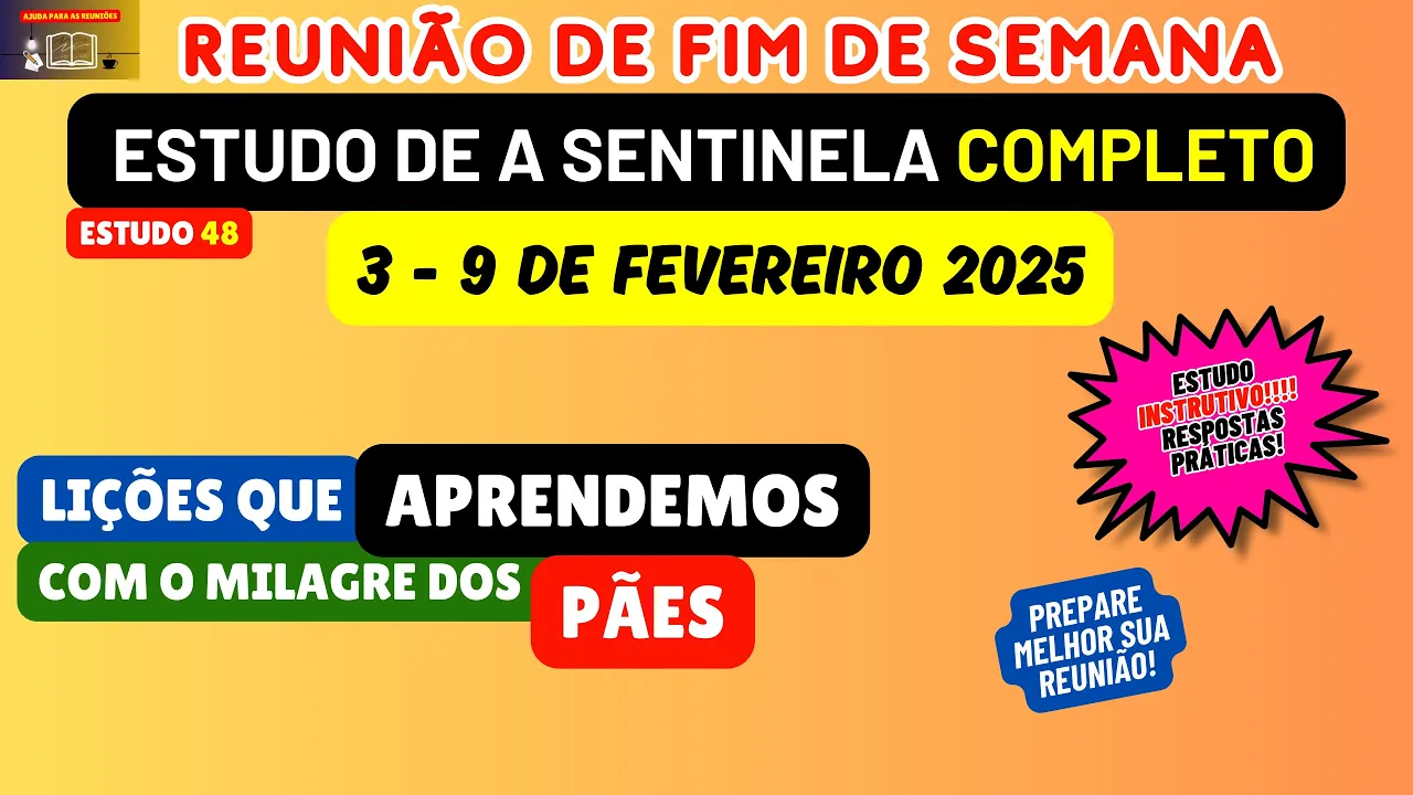 Neste vídeo nós vamos de maneira objetiva analisar e preparar o estudo 48 da revista Sentinela este artigo vai considerado na reunião deste fim de semana 3 A 9 de feveriro fazendo um breve comunicado Caso vocês queiram passar toda essa prara para os seus dispositivos acessem nosso site nosso blog lá você encontrar tanto aosta ch como também aosta completa dos parágrafos mais explicativa mais embasada então fiquem à vontade incentivamos também para aqueles que ainda não fizeram se inscreva no nosso canal deixe um gostei um comentário quando você comenta você mostra para o YouTube que esse conteúdo