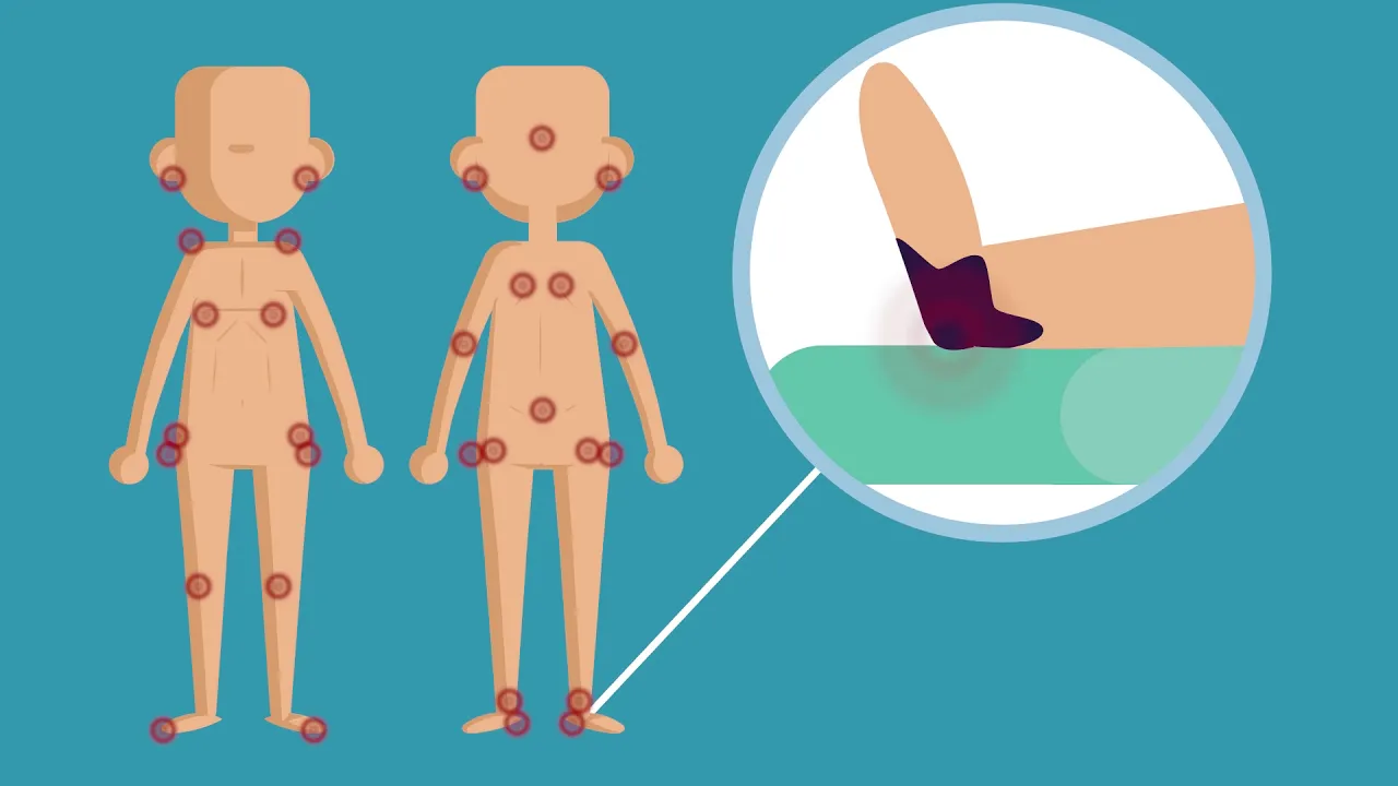 infectadas ocasionar sérios problemas de saúde e até levar à morte essas lesões podem ocorrer em pessoas que utilizam dispositivos médicos como sondas tubos drenos talas entre outros caso estejam mal posicionados ou mal afixados e também por qualquer situação que impeça uma pessoa decente dor se movimentar ou mudar de posição e em quais locais podem ocorrer e como faço para identificar sinais desta lesão geralmente elas aparecem em áreas de maior apoio da pele as premências do osso ao sentar se deitasse ou nos calcanhares muitas vezes têm uma cor diferente ou mais escura que a pele normal