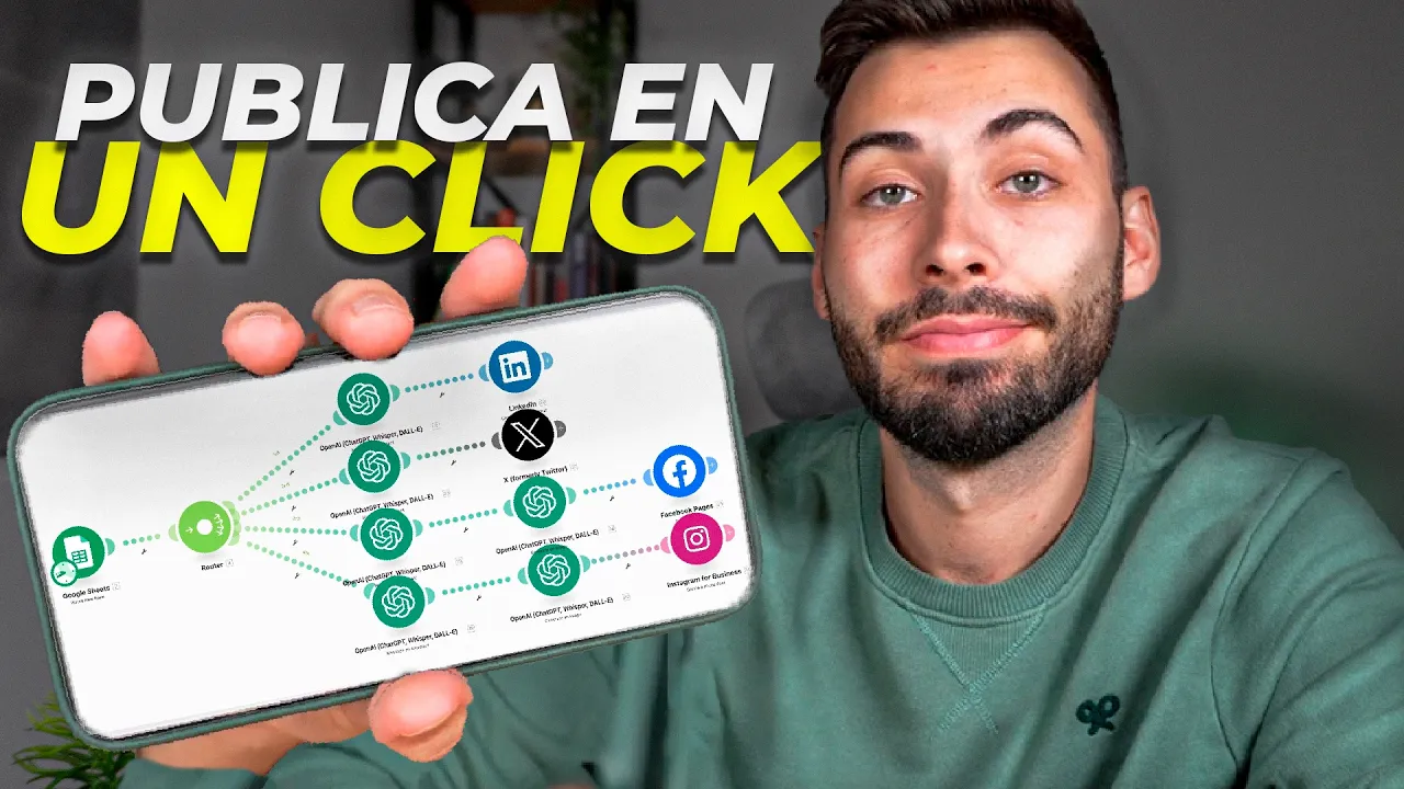 la presencia en internet es esencial sobre todo si es para un proyecto las redes sociales son una de las formas más fáciles para conectar con otras personas y difundir nuestro contenido Aunque estas requieren de bastante tiempo para publicar de forma activa desde pensar que publicar redactar el contenido hacer alguna imagen y En definitiva configurar su publicación pero podremos automatizarlo de alguna forma Pues bien fíjate en esto cuando activo esta automatización empieza a escribir y hacer directamente toda la publicación por mí en Facebook Instagram x y linkedin sin necesidad de entrar en cada una de las