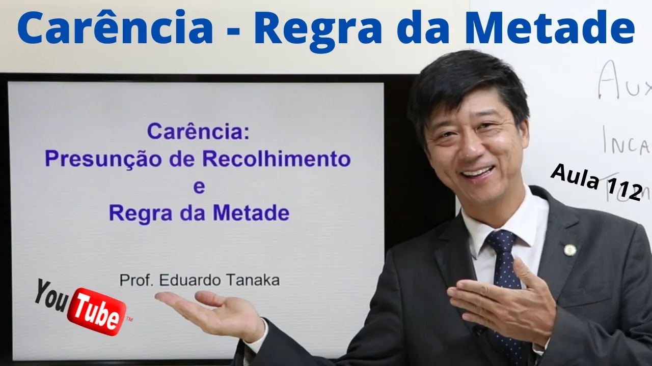 o Olá amigos amigas aqui Professor Eduardo Tanaka para mais uma aula de direito previdenciário vamos falar hoje sobre carência preso um som de recolhimento e regra da metade bom que que acontece na presunção de recolhimento né a legislação fala considera-se presumido o recolhimento das contribuições do segurado empregado trabalhador avulso e relativamente ao contribuinte individual a partir de Abril 2003 Abril 2003 é a presunção do contribuinte individual que presta serviços para empresas tá bom as contribuições dele descontadas pela empresa então gente eu já falei diversas vezes sobre essa presunção Não essa presunção é o seguinte mesmo