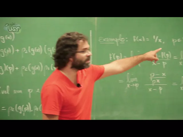 no numerador ali o que vai sobrar limite quando x tende à p d pm no x sobre peixes tudo isso / x - espelho certo simplificando aqui vai ficar com limite quando x tende à p d - 1 sobre o peixe que a gente sabe um sobre x é uma função contínua que o qual o limite só substituirá a estudar - 1 sobre el quadrado que é sempre um número real que provamos que a função sobre x é derivado em qualquer ponto e seu derivado é menos 1 sobre o quadrado se quiser pensar isso é