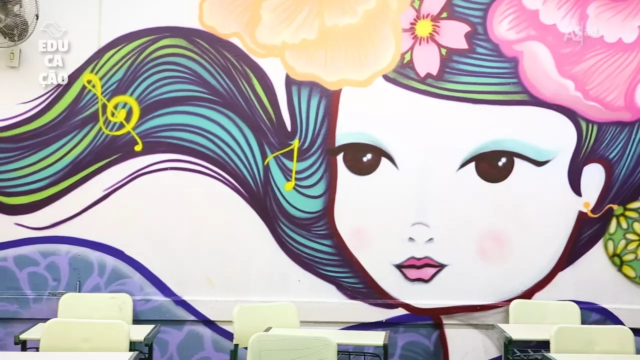 que isso é uma coisa bacana e diferente o sérvio tinha uma proposta que era a da intervenção do brazil it na escola ele fez um convite a nove outros artistas que viessem fazer a intervenção aqui na escola na sexta feira [Música] no dia que a gente chegou foi inesperado que a gente chegou ele pensou que a tensão mais um dia a gente entrou tinha sua obra de arte na parede gente ficou tirando várias faces aí na segunda feira nós voltamos aqui na escola para pegar a reação dos alunos e ver tudo como eles vão se