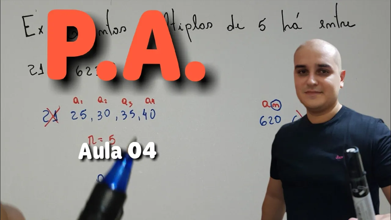 para se aprender matemática não precisa de muita tecnologia vamos aprender objectivo na prova vamos aprender como a temática no papel olá pessoal esta viola sobre progressão aritmética mais uma aula que estou fazendo assista na seqüência se está tudo certo e este aqui foi uma questão muito comum que quer bastantes que a questão que está relacionado com um múltiplo certo então vamos lá quantos múltiplos de cinco a entre 21 e 623 bom primeiro tempo sendo que é múltiplo os múltiplos de cinco são quem 05 10 15 o zé é muito bom e todos os números certos