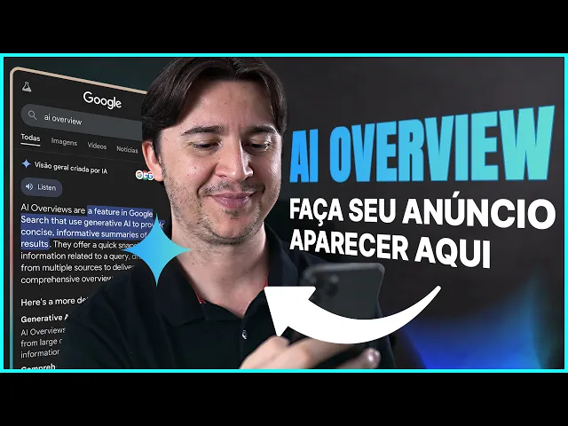 O Google fez uma mudança importante no buscador e agora ele não apenas exibe resultados de links como a gente tava acostumado, ele também exibe um resultado chamado AI overviews. É uma resposta de ya. Mas a importância é você entender por que isso apareceu, por que que isso surgiu e como que a gente coloca anúncios nesses locais.