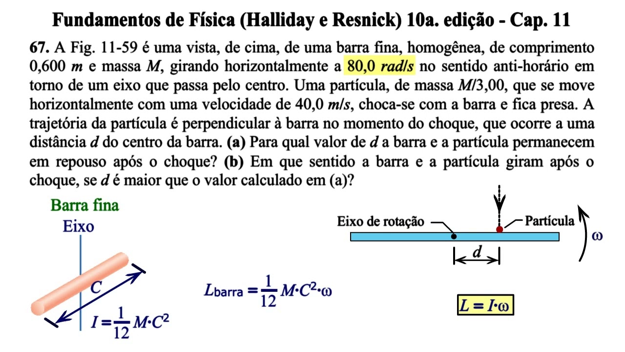 fizesse esse cálculos aí dá 1,979 metros por segundo vamos escrever os resultados parciais com quatro ou mais algarismos um a mais do que a medida original mais precisa para fazermos o arredondamento com a precisão adequada no final da resolução do problema Essa será a velocidade horizontal com que o bloco atinge a barra o Momento Angular do sistema bloco/ imediatamente antes da colisão será igual ao Momento Angular do bloco uma vez que apenas ele está em movimento o Momento Angular de uma partícula em movimento em relação ao vegetação é dado por o vetor L é igual