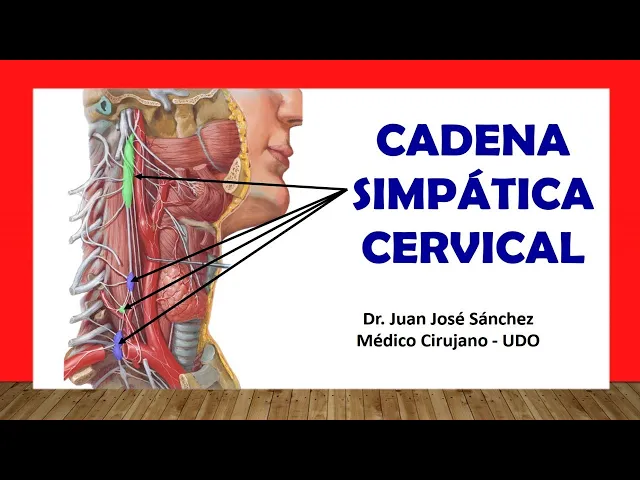 ok mis queridos oyentes bienvenidos entonces a la tercera y última parte de la inervación del cuello hoy hablaremos de la inervación autónoma del cuello específicamente de la inervación simpática por parte de la cadena simpática cervical ok esta cadena simpática cervical está compuesta por un grupo de ganglios que van a ser específicamente cuatro o en algunas personas pueden llegar a ser tres nada más que va a ser entonces el ganglio cervical superior luego hablaremos del ganglio cervical medio luego del ganglio vertebral y por último del ganglio servico toráxico estos ganglios están interconectados entre sí por una