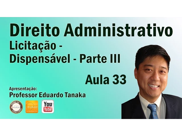 [Música] Olá amigos da editora atualizar estamos aqui mais uma aula de direito administrativo Professor Eduardo Tanaka e vamos dar continuar continuidade a nossa aula sobre licitações Estações dispensáveis né estamos a falar ali das licitações dispensáveis em razão da situação Então quais são as situações que nós temos aqui agora vamos ver aqui o inciso 11 que fala na contratação de remanescente de obra serviço ou fornecimento em consequência de rescisão contratual desde que atendida a ordem de classificação da licitação anterior e aceita as mesmas condições oferecidas pelo instante vencedor inclusive quanto ao preço devidamente corrigido beleza Aproveitei