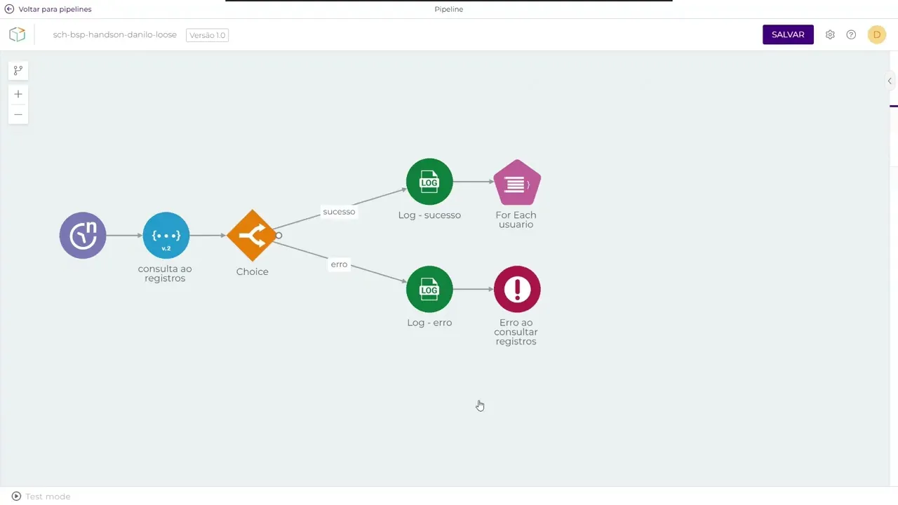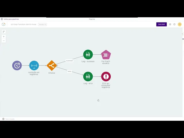 vou excluir erro por ID aqui o account novamente aws candra operação delete Connection string enablement DB URL e aqui na cy eu tenho na Carry eu tenho justamente essa Carry aqui que é eu quero deletar da tabela que estamos utilizando para controle de execução quando o ID foi igual o ID que já está chegando né que a gente tá dentro de um forit eu vou excluir um registro específico quando eu confirmo posso aqui por ser uma e já excluindo esses erros Agora posso voltar para o meu fluxo principal vou aqui no meu colocar um log