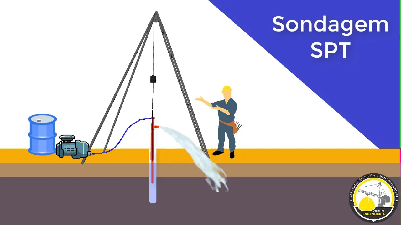 spt né a grande maioria já sabe como é o processo mas eu vou falar aqui passo a passo do processo do ensaio de sp para que vocês possam entender certo como é que funciona o ensaio de spt sair consiste pessoal na cravação de uma sonda chamada de amostrador é não só a gravação é feita através de um martelo com um peso padrão de 65 quilos souto também a uma altura padrão de 75 centímetros o processo para a realização do ensaio é o seguinte nós montamos o tripé que a estrutura principal desse tipo de ensaio é