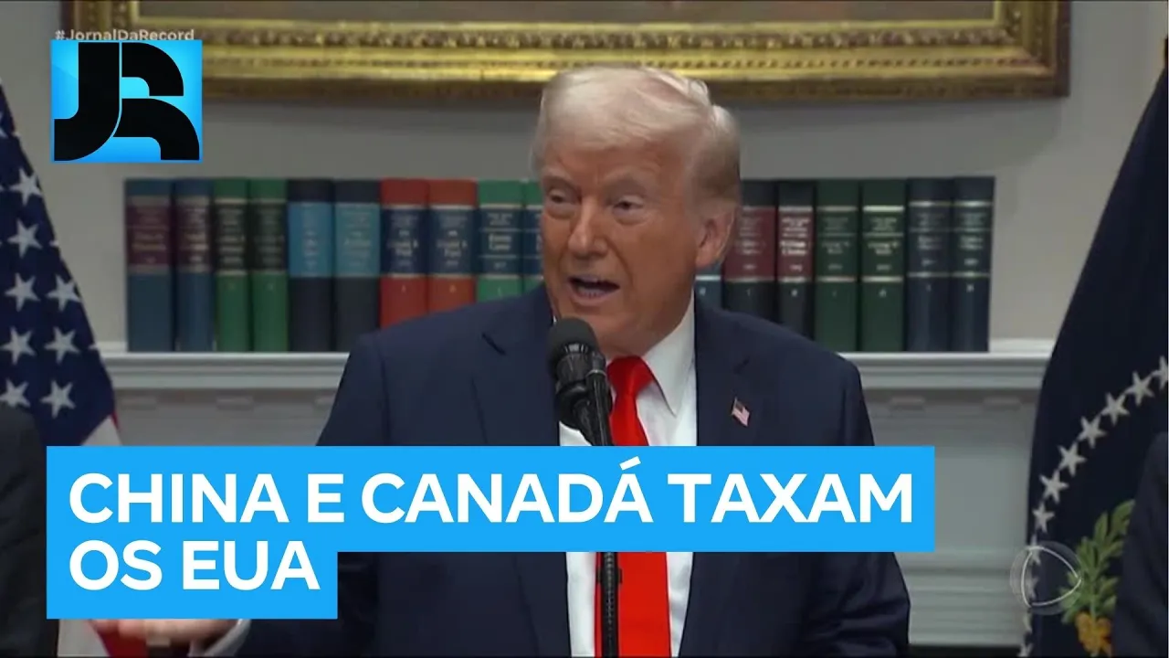 destaque internacional China e Canadá anunciaram novas tarifas a produtos americanos as medidas foram tomadas em Retaliação à taxas de importações impostas pelos Estados Unidos que entraram em vigor a partir de hoje México e Canadá passaram a ter as exportações para os Estados Unidos taxadas em 25% enquanto as tarifas sobre produtos chineses aumentaram para 20% o Presidente Americano diz que a medida é uma forma de pressão aos maiores parceiros comerciais dos Estados Unidos trump quer mais segurança na fronteira com o México e também combater o tráfico de drogas especialmente o fentanil vindo da China Donald trump