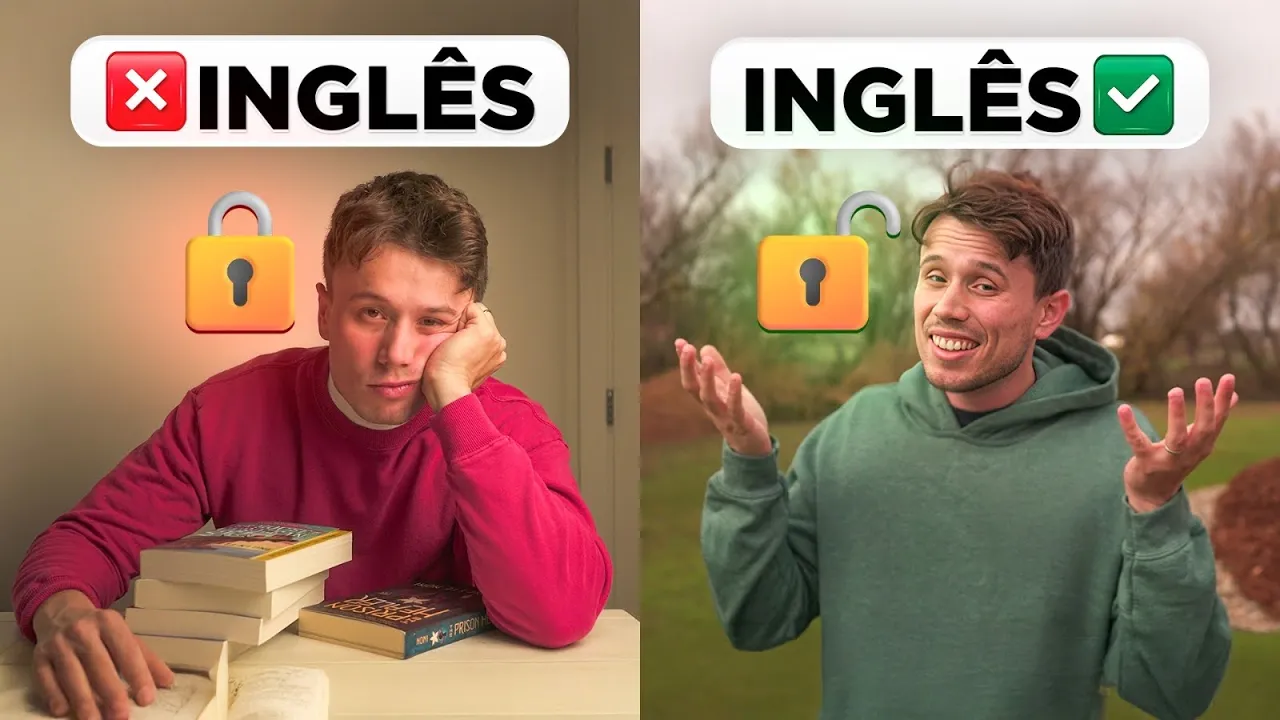 você ainda só não fala inglês por dois motivos e olha não é culpa sua o primeiro motivo é algo que eu até já mencionei aqui em um vídeo anterior na sua vida na escola você foi bombardeado com um monte de informações aleatórias um monte de nomes super difíceis que não só confundem mas também te sobrecarregam fazendo você acreditar que o inglês é super complexo e é algo só para quem nasceu com talento para aprender idiomas ou você provavelmente criou a impressão que aprender exige muito tempo especialmente Por conta desses cursos longos divididos em níveis como