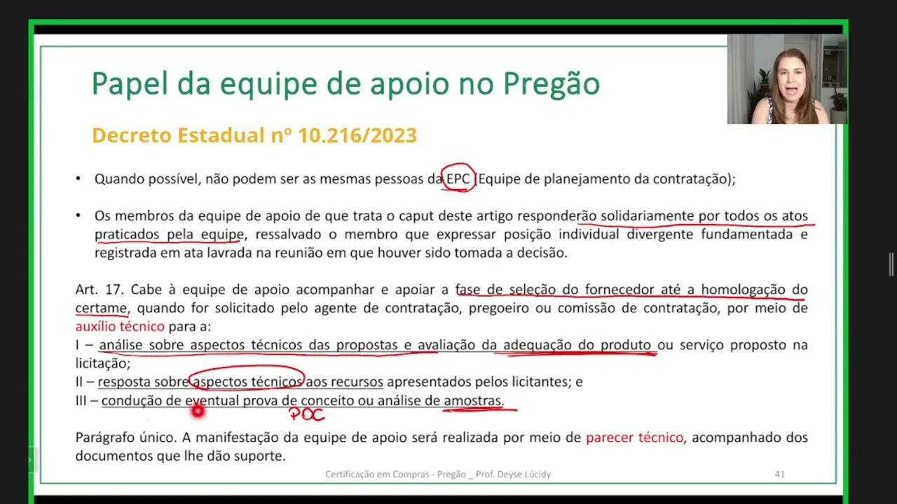agente de contratação mas ajudar como de que forma que ele vai induzir o agente de contratação é não trouxe então no Estado de Goiás nós temos o reglamento 10.216 o Decreto que trata do papel da equipe de apoio então nas nossas contratações vale o que tá descrito no decreto 10.216 certinho Bora lá vamos dar continuidade ao nosso [Música] curso h [Música]