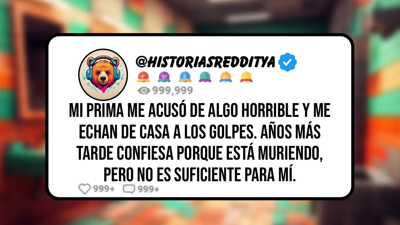 mi prima me acusó de algo horrible y me echan de casa a los golpes años más tarde confiesa porque está muriendo pero no es suficiente para mí Hola a todos Yo de 36 años Tengo un dilema para ustedes no estoy seguro de cómo me siento posiblemente muy solo No tengo a donde más acudir he sido un lector asiduo aquí y sentí que este era el mejor lugar para compartir Mi historia apreciaría cualquier consejo que pueda obtener hay mucha información de fondo para repasar con todos ustedes Así que esto va a ser un largo post primero