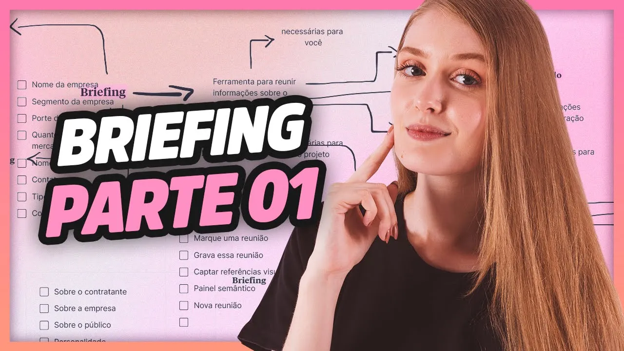Eu já falei sobre briefing esses dias aqui no canal; vou deixar o card aqui em cima para quem ainda não assistiu. Nele, eu mostrei um modelo de briefing, porém, o briefing é composto por várias partes, várias etapas, e ele permite que você personalize o seu briefing de acordo com as suas necessidades. Então, eu decidi complementar esse assunto, já que é uma pergunta que eu sempre recebo na minha caixinha de perguntas lá no Instagram.