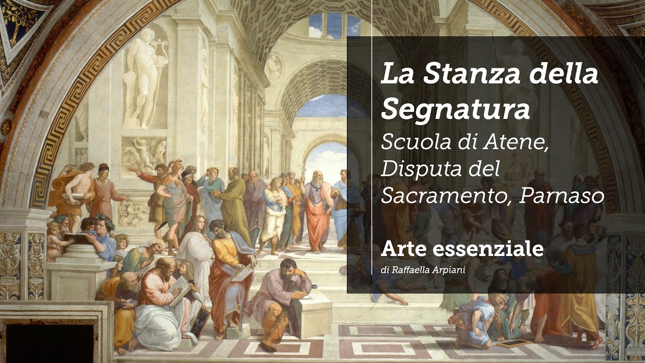 presenza di raffaello tra i filosofi nelle vesti di a pelle e simbolo del godimento supremo del bene e del vero mediante il bello e l'implicazione che l'arte è alta filosofia come esplicazione delle armonie numeriche del bello visibile armonie che costituiscono in ultima analisi la struttura dell'essere le raffigurazioni di michelangelo nella figura di eraclito leonardo da vinci come platone e bramante come euclide alludono all'elevazione del mestiere degli artisti tra le arti liberali secondo lo spirito pienamente rinascimentale [Musica] interessanti le statue di apollo dio delle arti e minerva dea della sapienza che connotano ulteriormente l'ambiente come il