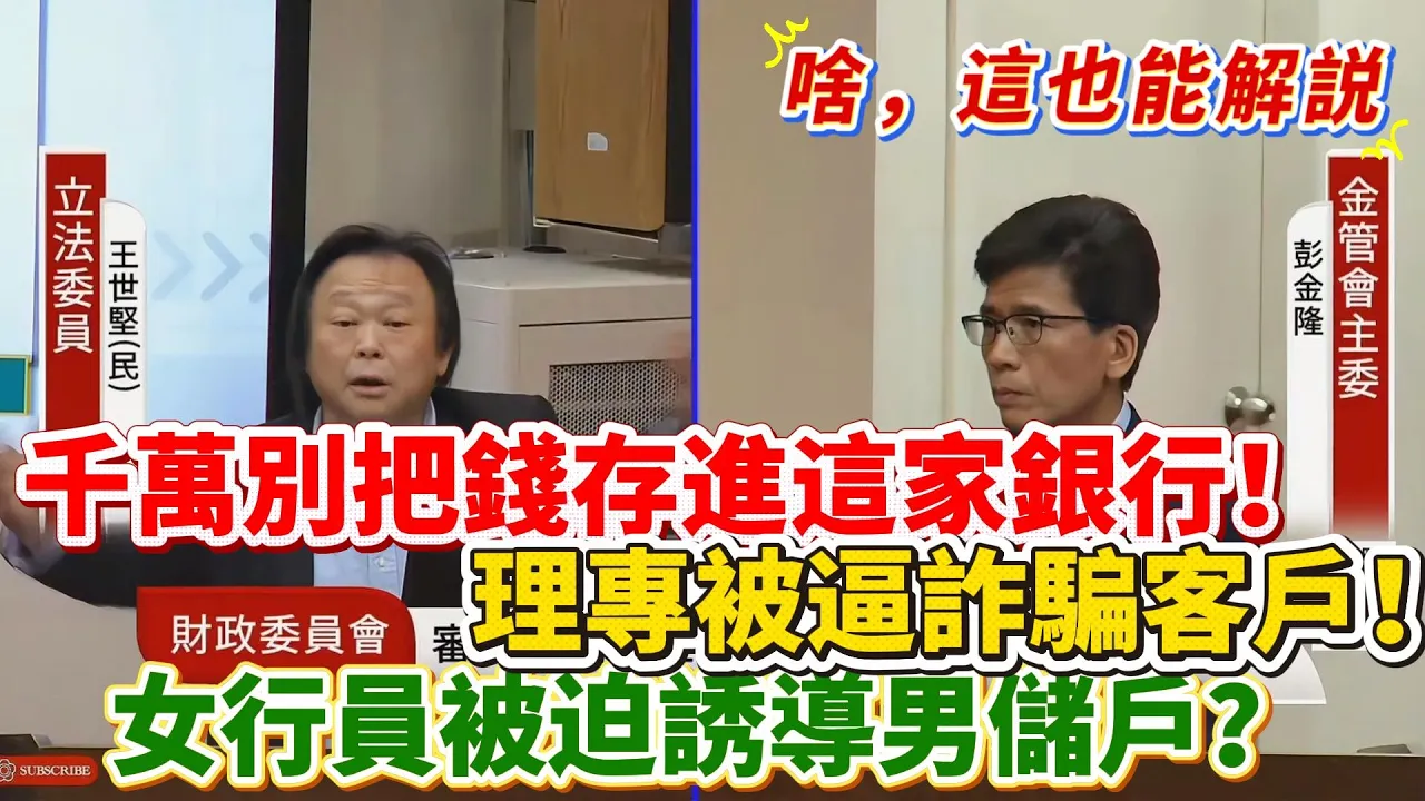 【解說】千萬別把錢存進這家銀行!理專被逼詐騙客戶!女行員被迫誘導男儲戶?騙不到十萬就滾蛋?|立法院質詢|王世堅
