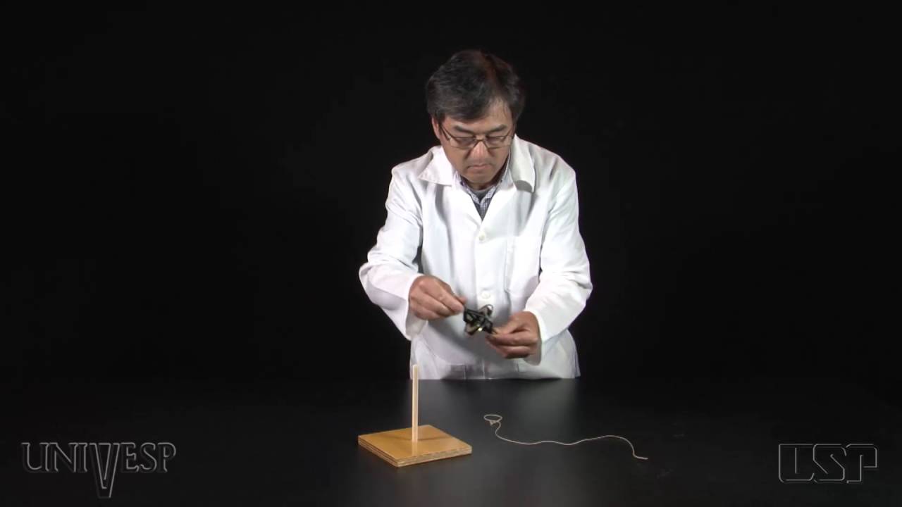 nesta demonstração usaremos uma banqueta sobre uma plataforma giratória e dois alteres iniciaremos sentando na banqueta e segurando os dois altos com os braços esticados ao girar a plataforma todo o conjunto realiza um movimento de rotação com determinada velocidade angular em torno do eixo da plataforma girante quando encolhemos os braços as massas dos alteres ficam mais próximas do eixo de rotação e a banqueta gira mais rápido isso acontece pois o momento de inércia de um corpo depende da distribuição das massas ou seja quanto mais próxima a massa estiver do eixo de rotação menor será o momento