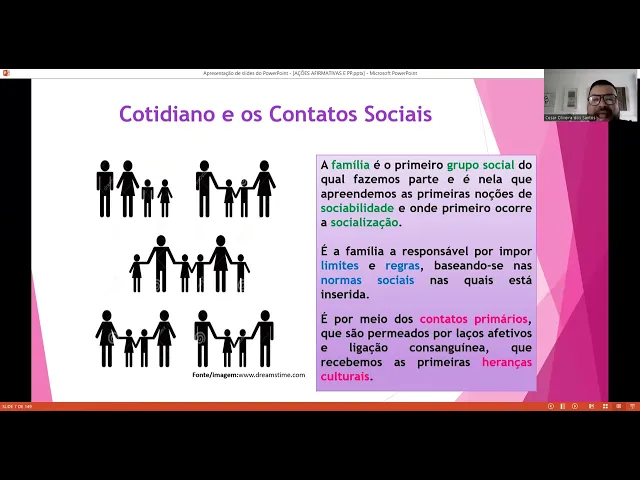 questão de limites de regra né esse contato primário que a gente tem relação à família né essa família de laço afetivo laços sanguíneo como eu falei para vocês gente o papel da família vai se modificando o papel da família está Se modificando Então por estar realmente se modificando a gente vai vendo realmente é na prática essas novas heranças culturais essas novas heranças que vão fazendo parte em relação a tudo isso então por isso que a gente sempre vai ficar atento a gente sempre vai pensar Nessas questões que envolvem Também quem cuida de mim tanto quer