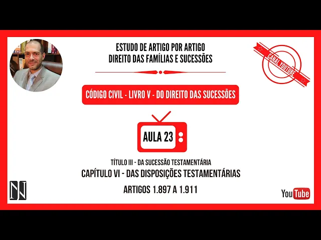 olá bem-vindos de volta nosso canal hoje é o vigésimo terceiro vídeo nosso curso direito das famílias e sucessões ela teremos hoje sobre um tema muito complicado que são as disposições testamentárias a partir do artigo 1897 tão para isso precisaremos aqui nos atentar em alguns conselhos alguns conceitos inclusive e doutrinários ok é trarei outros artigos e deixarei aqui recomendado que faça uma leitura e faço um aprofundamento a compreensão total do capítulo do nosso estudo de hoje tá certo antes de continuarmos inscreva-se em nosso canal ative as notificações e também nos sigam no instagram principalmente porque pelo