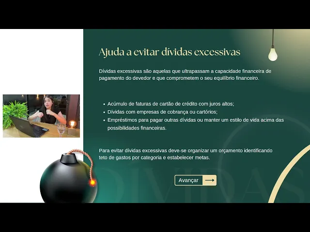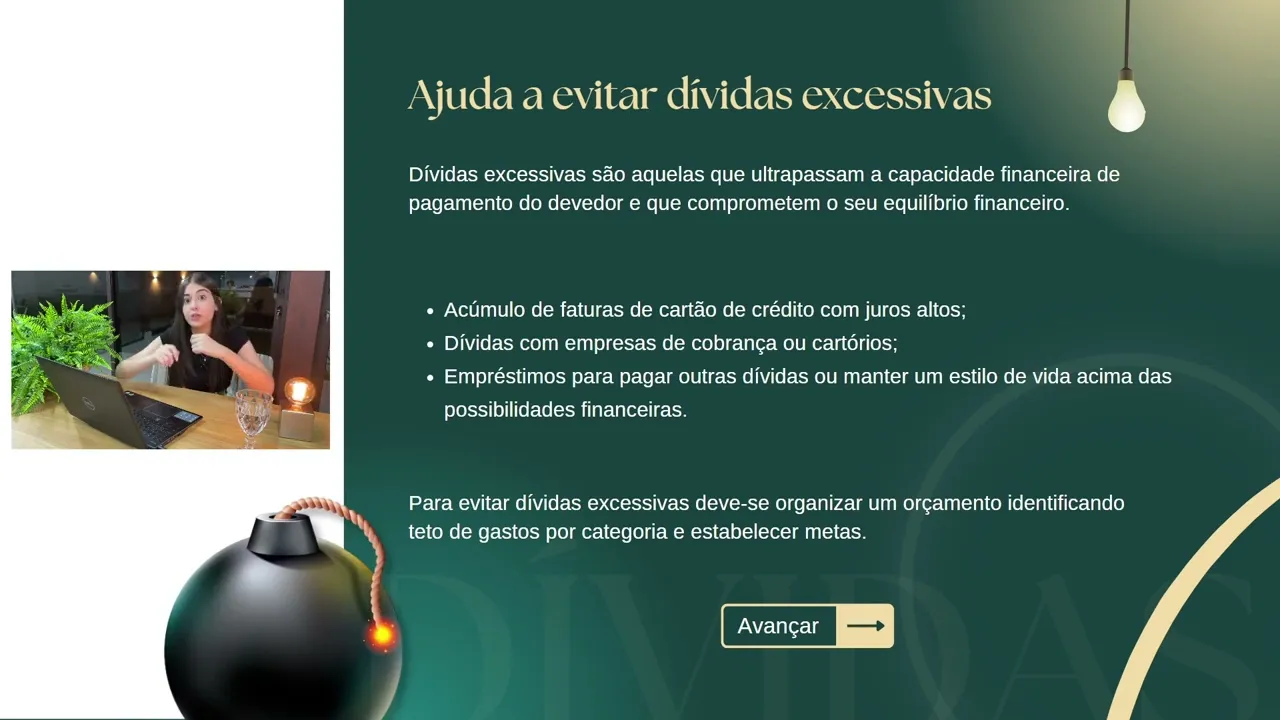 consegue identificar oportunidades de negócio e empreendedorismo conhecendo sobre Finanças você conhece também o mercado financeiro os mercados em geral Então você consegue identificar oportunidades em cada mercado como está hoje investir naquilo E você também tem uma visão Ampla de como está a economia brasileira neste momento Então você consegue ver se é o melhor momento para investir em alguma oportunidade ou não a educação financeira também te ajuda a evitar dívidas excessivas mas o que que é isso pessoal muitas pessoas gastam mais do que recebe é o famoso vou jogando no cartão de crédito no final do