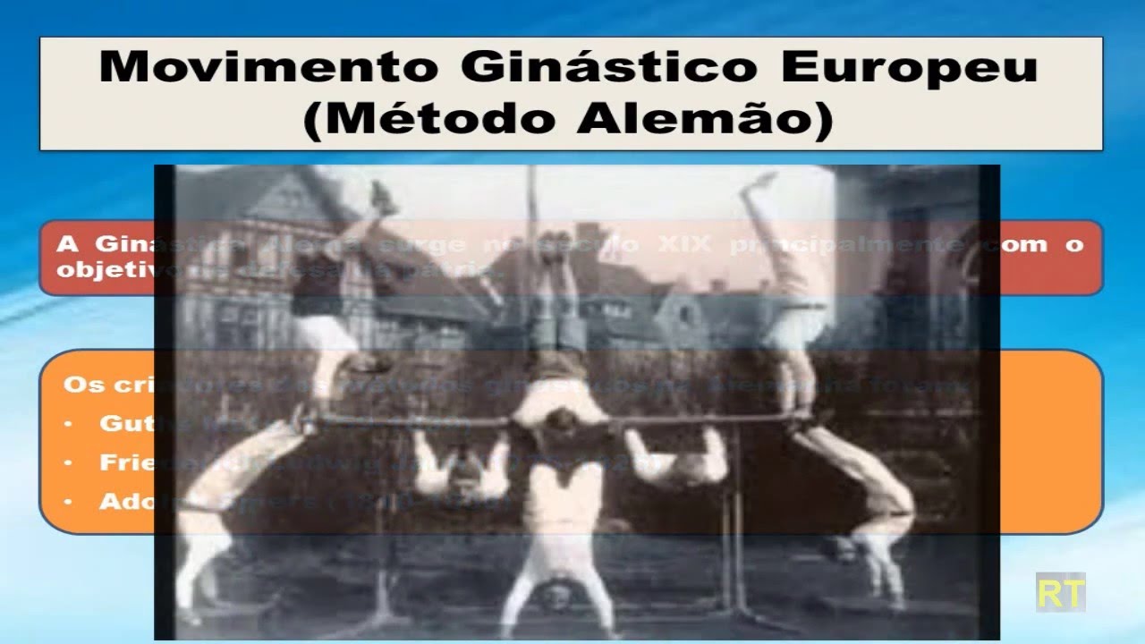 olá pessoal é na vida aula de hoje vou começar a abordar o chamado movimento ginástico europeu que ocorreu na segunda metade do século 19 na europa nos próximos três vídeos é falarei sobre as três principais escolas o método ginástico que fizeram parte desse movimento que foram os métodos genéticos alemão sueco eo método francês bem começamos nossas aulas podemos ver aqui no quadro verde que o movimento ginástica europeu ocorreu no século 19 e abrangeu os estilos de trabalho com a ginástica na escola proposto pela alemanha suécia frança e dinamarca que juntamente com o esporte da inglaterra