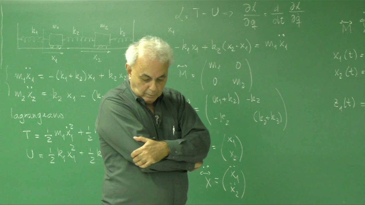 [Música] o que eu vou mostrar pra vocês aqui é o seguinte é que muitos sistemas físicos eles são compostos de várias várias massas acopladas ea força de interação entre eles lembre se sempre que se eu estou nas vizinhanças de um ponto de equilíbrio estável qualquer perturbação que eu faça em torno desse ponto de equilíbrio instável vai fazer com que a nação 111 oscilação portanto você tratar o problema de você ter vários os osciladores que se comunicam que estão acoplados uns aos outros é de grande importância na física é tanto na tanto da física clássica como