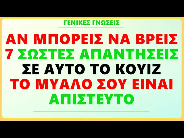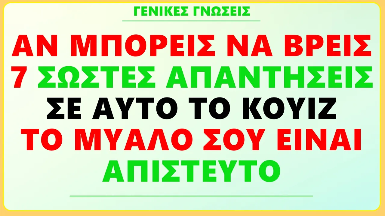 ΑΝ ΜΠΟΡΕΙΣ ΝΑ ΒΡΕΙΣ 7 ΣΩΣΤΕΣ ΑΠΑΝΤΗΣΕΙΣ ΣΕ ΑΥΤΟ ΤΟ ΚΟΥΙΖ, ΤΟ ΜΥΑΛΟ ΣΟΥ ΕΙΝΑΙ ΑΠΙΣΤΕΥΤΟ!