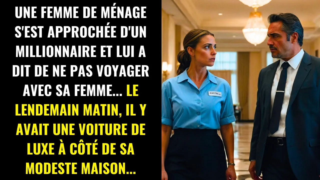 Une femme de ménage s'est approchée d'un millionnaire et lui a dit de ne pas voyager avec sa femme le lendemain matin il y avait une voiture de luxe à côté de sa modeste maison Marie pousa son saut de nettoyage avec un soupir silencieux c était une autre longue journée dans ce grand hôtel parisien où elle travaillait depuis plusieurs années chaque coin brillant de ce lieu contrastait violemment avec sa propre vie modeste Dans une petite banlieue à l'extérieur de la ville pour les riches et les puissants qui fréquentaient cet hôtel elle n'était qu'une ombre invisible et