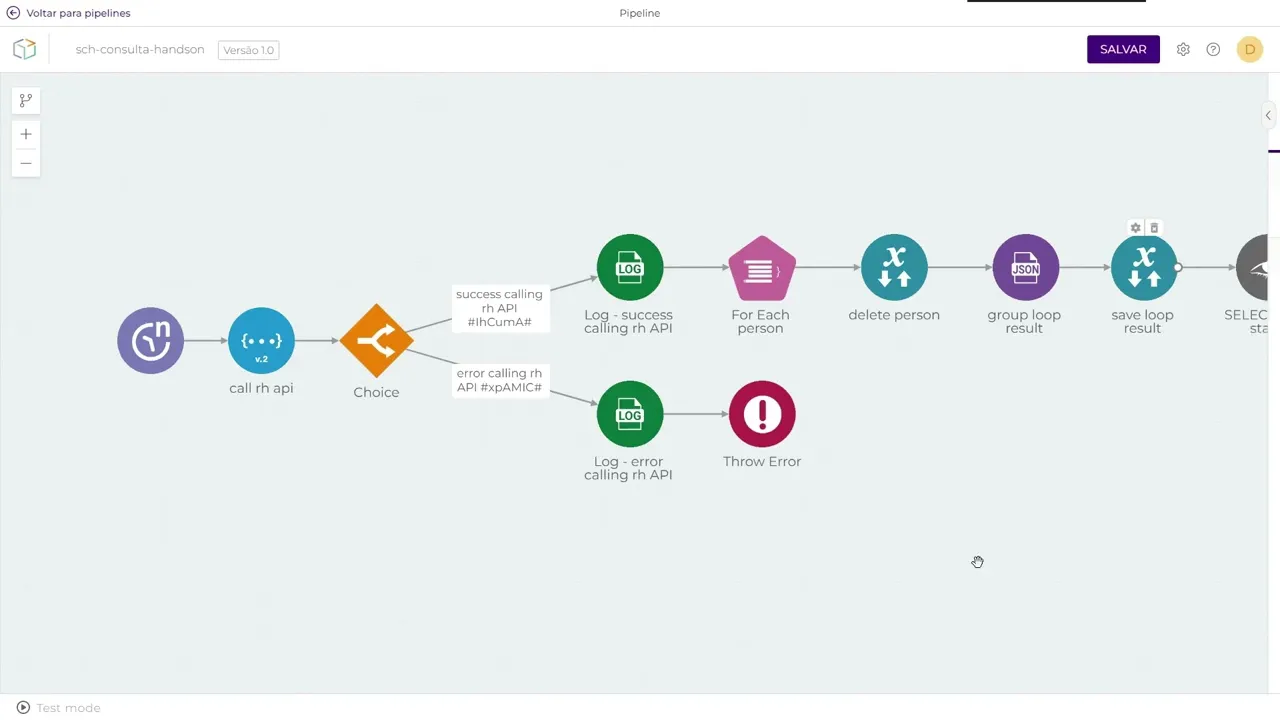 dois conectores de Jon generator e evento e padronizar isso em todo envio de erro aqui vamos colar no pipeline de consulta esse de erro padronizado e com isso nós finalizamos a integração fazendo aut do Quad pipelines sendo esse de consulta que publica eventos de processamento o evento de processamento que vai em cada execução fazer o processo do elemento que foi enviado temos o pipeline de reprocessamento para tratamento de erros e o pipeline de envio de erro evento de erro para lidar com todos os erros do ambiente em si é isso vamos salvar pipeline e aqui