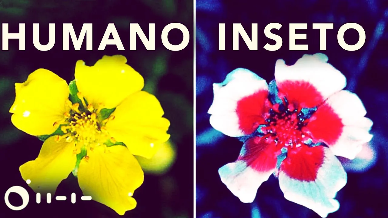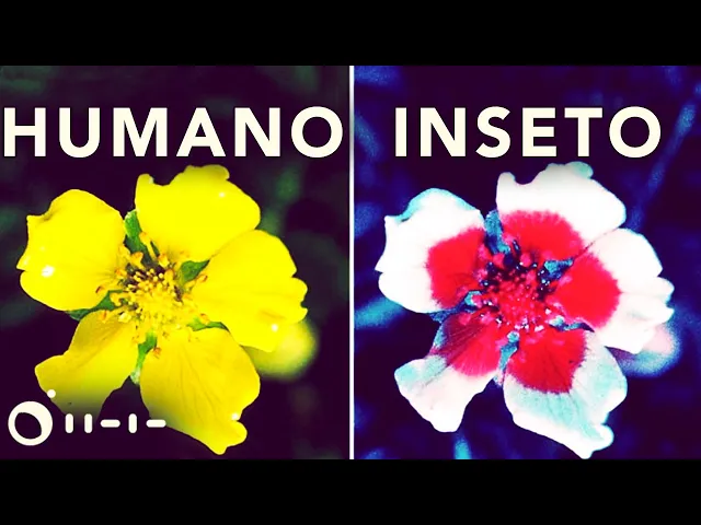 avaliar a aparência de frutas alguns deles na verdade precisarão um encontrar flores como é o caso de abelha abelhas possuem um espectro de visão diferente do nosso no lugar de ícones do vermelho seus olhos abrigam cones do mundo é isso quer dizer que elas não conseguem perceber o vermelho Mas em compensação vem o ultravioleta E isso tem consequências Deixa essa flor para gente ela aparece completamente de uma única cor sólida porém os olhos desses insetos conseguem ver além e revelam um padrões escondidos de nós para eles as pétalas formam um alvo o que pode ajudá-los
