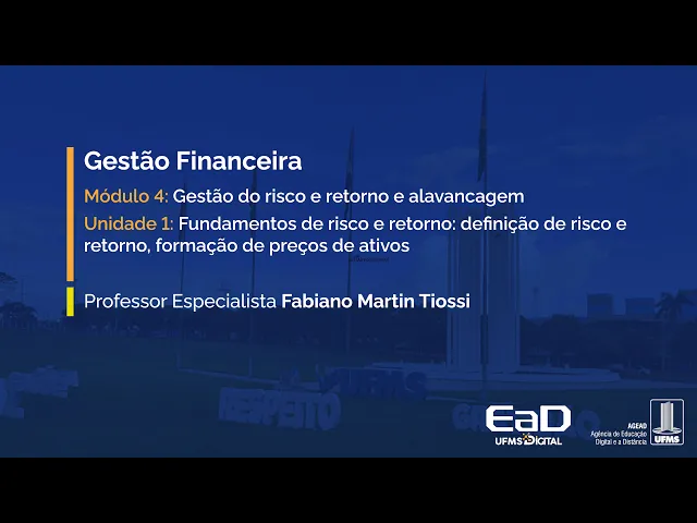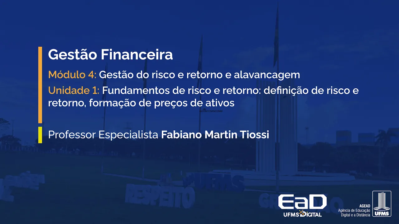 [Música] Olá saudações dando sequência as aulas sobre gestão financeira hoje iniciaremos o módulo 4 gestão do Risco e retorno e alavancagem nessa unidade 1 falaremos sobre fundamentos de risco e retorno definição de risco e retorno formação de preços de ativos para iniciarmos a nossa aula é importante trazermos algumas definições Quando falamos em risco o sentido que o termo nos traz de acordo com a literatura ou seja de acordo com os autores que estamos utilizando para esta aula Santos risco pode ser definido como a probabilidade de perda Financeira ou mais formalmente a variabilidade dos retornos Associados