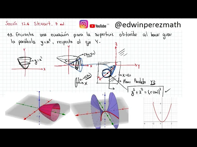 Cálculo Stewart Ej 43 Sección 12.6 Ecuación de una superficie de revolución. y=x^2 respecto al eje Y