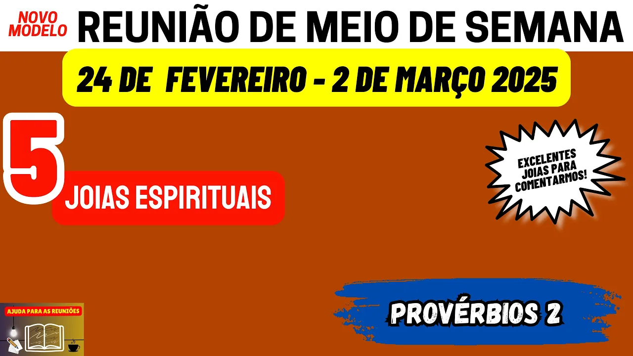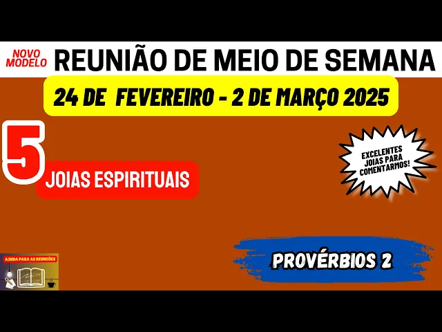 bem-vindos amados irmãos ao nosso canal ajuda para as reuniões Esperamos que todos vocês estejam bem e tenham tido um excelente fim de semana meus queridos entrando na reunião desta semana 24 de Fevereiro a 2 de Março nós estaremos Considerando o texto de provérbios Capítulo 2 esse texto é a base de toda a reunião e como de costume Neste vídeo nós vamos analisar e preparar algumas joias espirituais que podemos encontrar nesta leitura e assim e estar comentando nessa parte portanto para aqueles que ainda não fizeram se inscrevam no nosso canal deixem um gostei façam um comentário