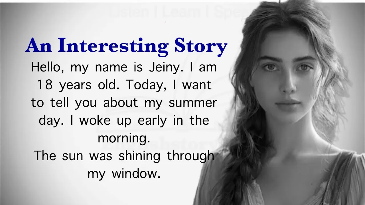 welcome to English story 2day don't forget like And subscribe hello my name is jiny I am 18 years old today I want to tell you about my summer day I woke up early in the morning the Sun was shining through my window I stretched and got out of bed I love the Morning Light it makes me feel happy first I went to the bathroom I washed my face and brushed my teeth my toothbrush is pink and it's my favorite color then I combed my hair I have long brown hair I like to keep it neat