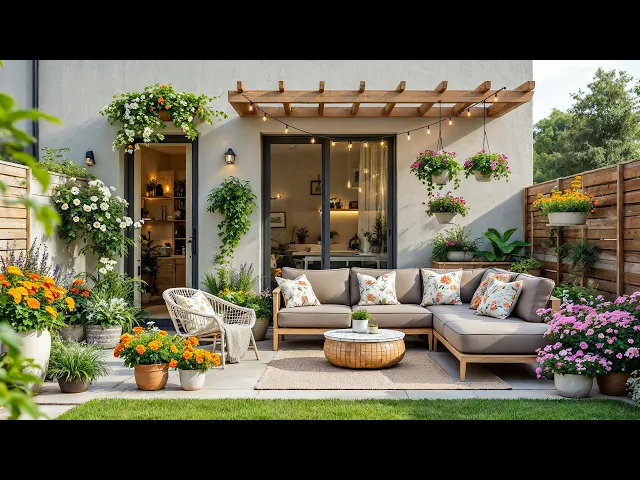 Modern garden design with the most beautiful house facade and Patio of all time