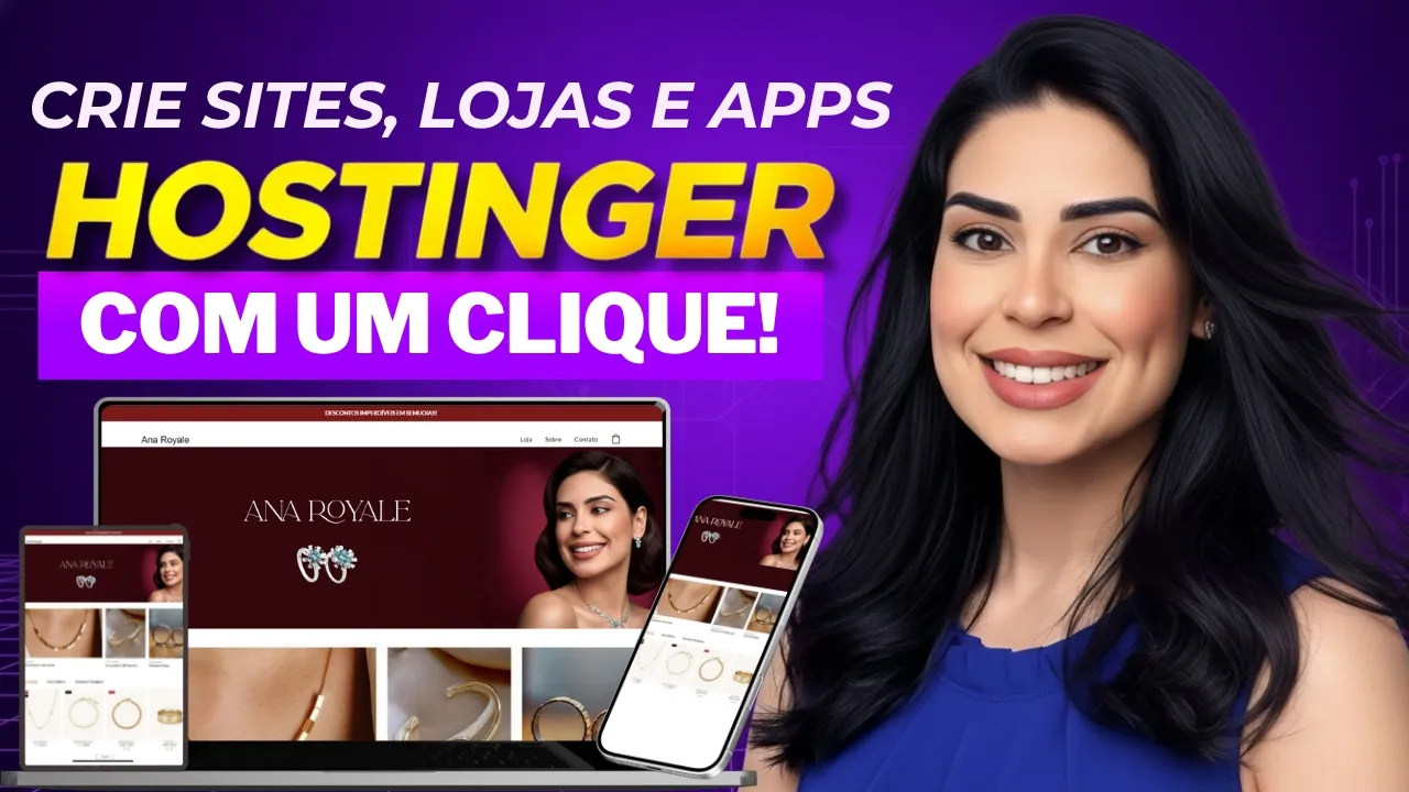 Se você tem uma ideia de projeto, quer montar sua loja, seja de produtos físicos, digitais ou até mesmo criar o seu portfólio, mas acha que tudo é muito complicado, [música] a boa notícia é que hoje isso ficou ainda mais fácil. Eu vou te apresentar uma das plataformas mais completas e atualizado, a Hostger. Com ela você tem tudo em um só lugar, domínio, integração com e-mail marketing, banco de dados, gateway de pagamento e até recursos de inteligência artificial para deixar seu site, seu projeto ainda mais profissional.