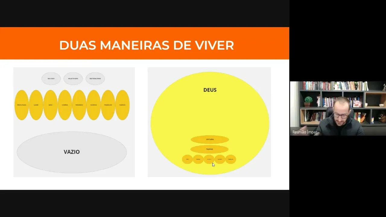 para nós vivermos é esta manhã que que é viver com Deus oi e daí eu consigo ordenar as coisas Ah tá porque para para eu viver com Deus nos cada vivendo com Deus primeiro se percebe que eu já fico acolhido porque eu tô dentro de algo é muito do vazio ali da esquerda da parte esquerda é exatamente tipo o cara não tem fundo esse negócio é tá faltando alguma coisa Apesar de eu estar comprando toda a cartilha que falaram que eu está bem eu continuo tendo um buraco no peito que acontece eu não lembro agora